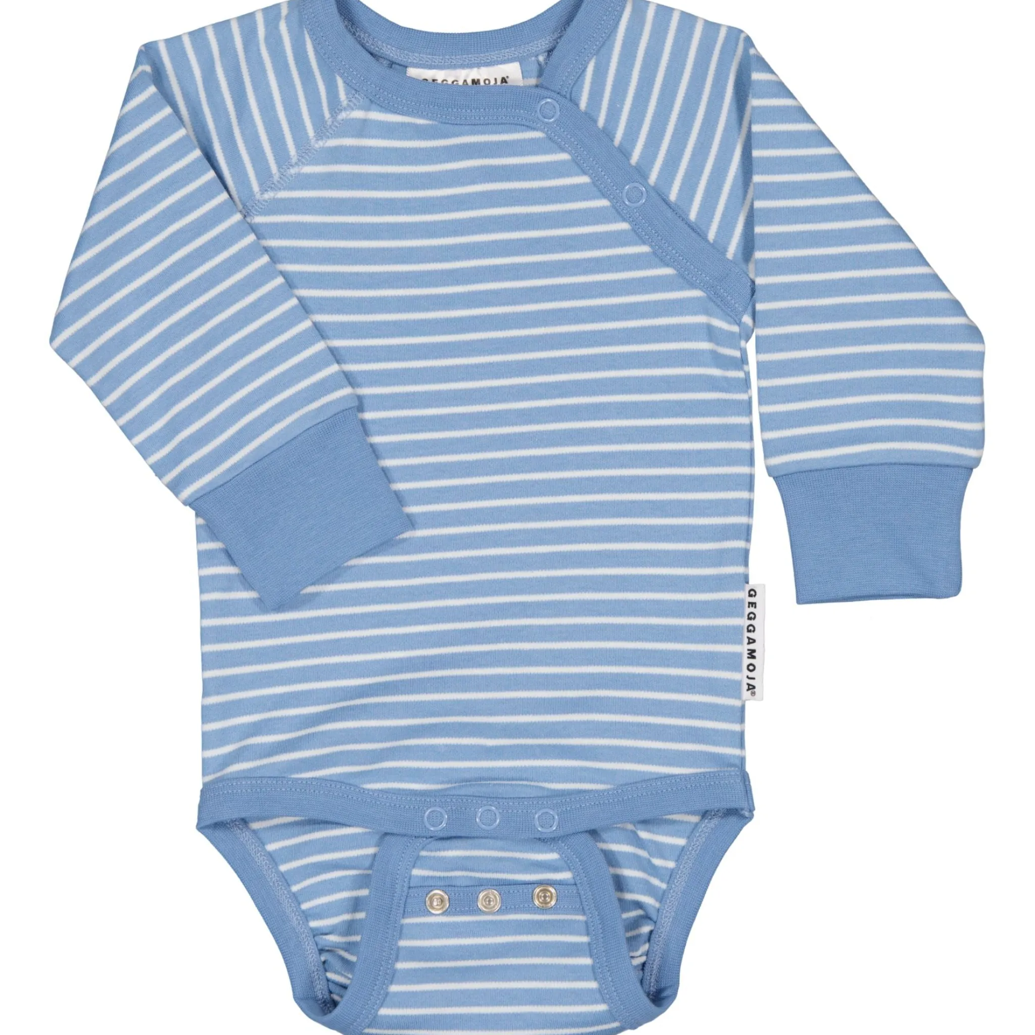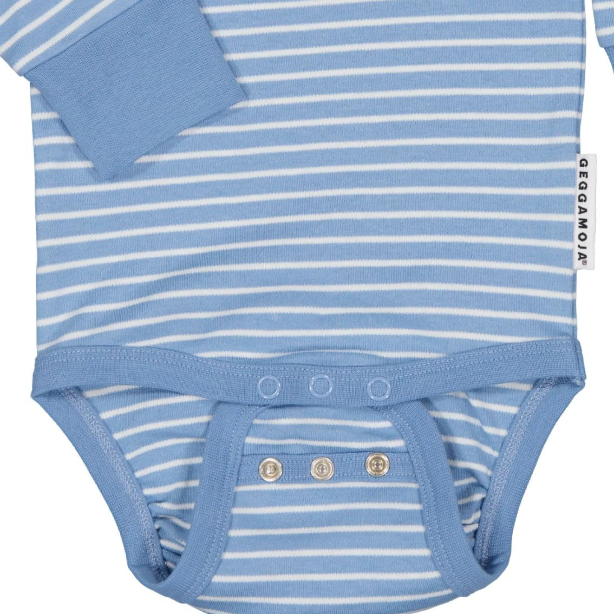 Randig body i 100% bomull. Tryckknappar fram vid vänster axel för att enkelt trä över huvudet och tre tryckknappar i grenen. Bodyn är utrustad med vår Extended size vilket innebär dubbla knapprader i grenen så du kan anpassa passformen samt mjuk mudd i ärmslutet som går att vika upp. Detta gör att bodyn passar mycket längre.