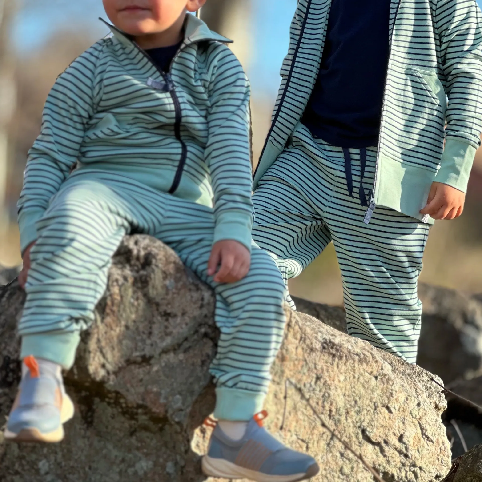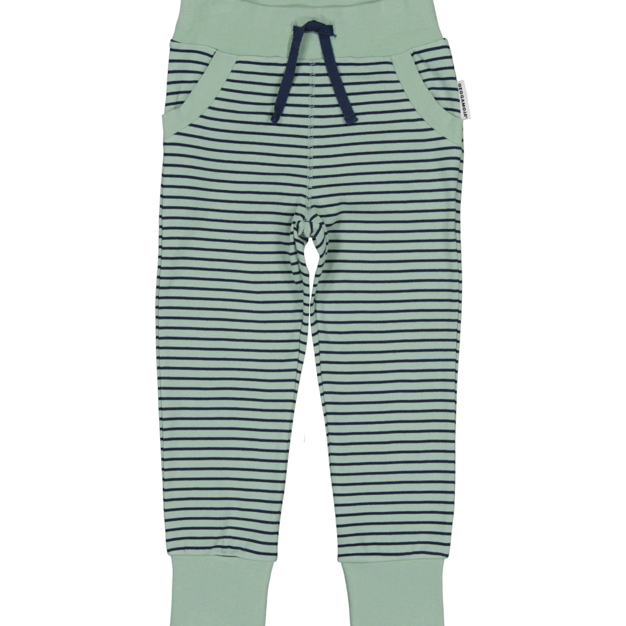 Mjukisbyxa i trikå. En klassisk Geggamojabyxa. Reglerbar resår i midjan och fejk-snodd.