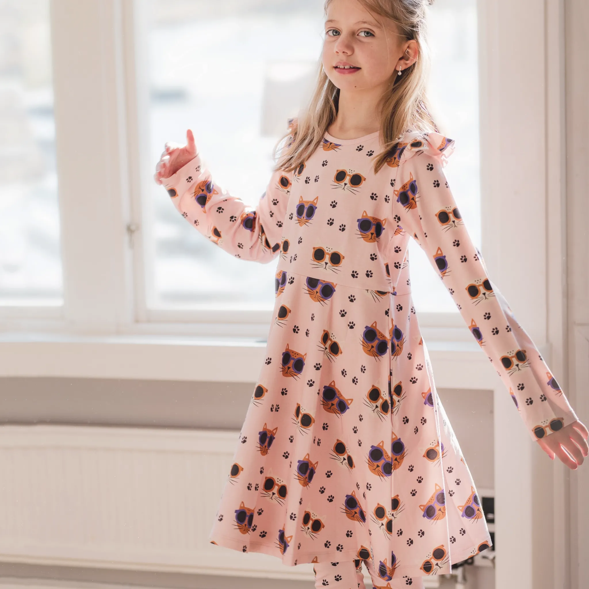 Långärmad snurrklänning i bambu. En klassisk favorit i garderoben hos många Geggamojakunder. I de två minsta storlekarna 50/56 och 62/68 har den en insydd body.
