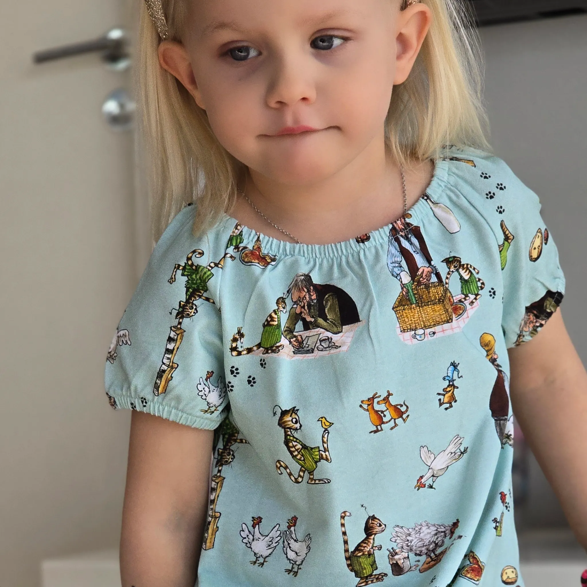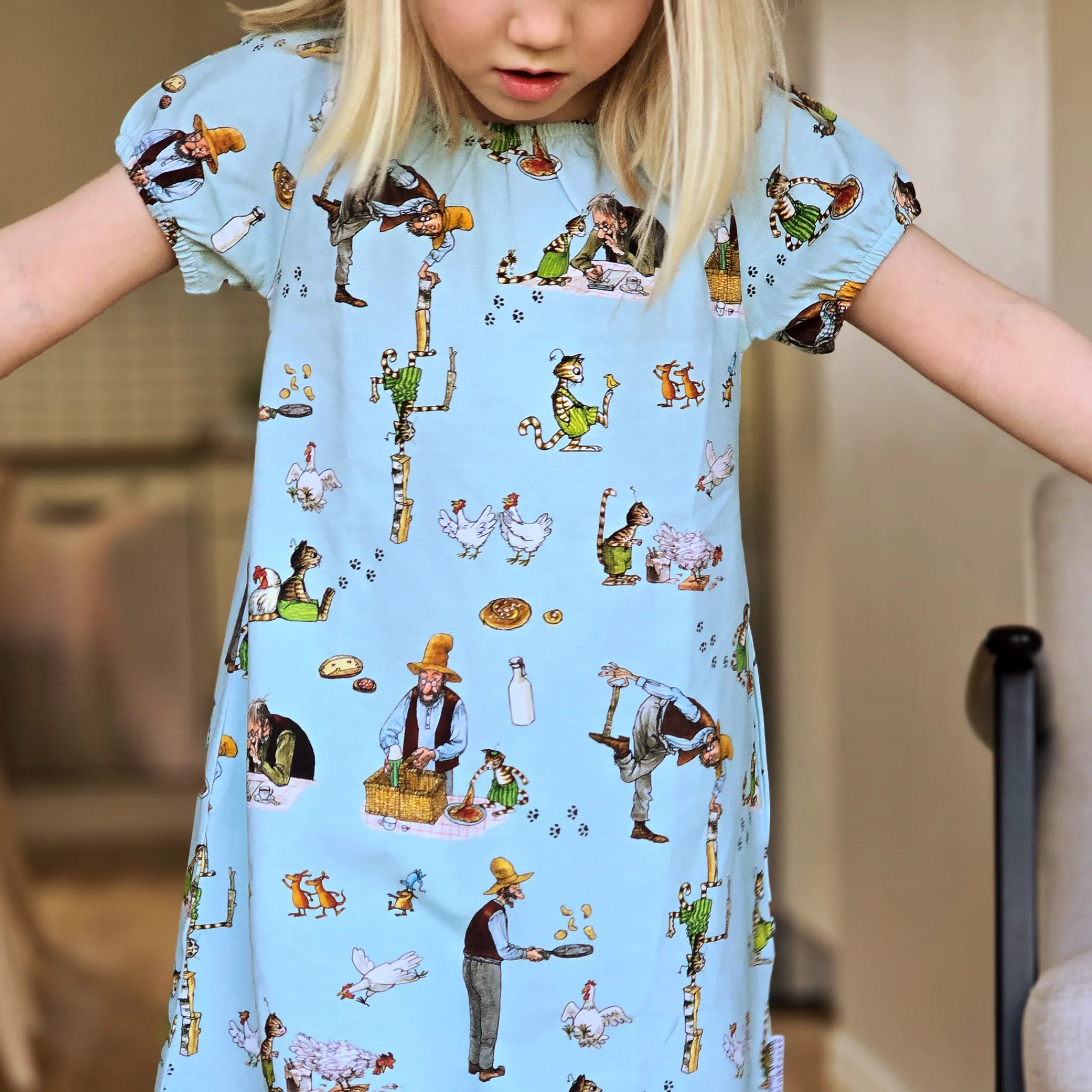 Singoallaklänning med Pettson och Findus som är mångas favorit. Skön modell med dolda fickor i sidorna.