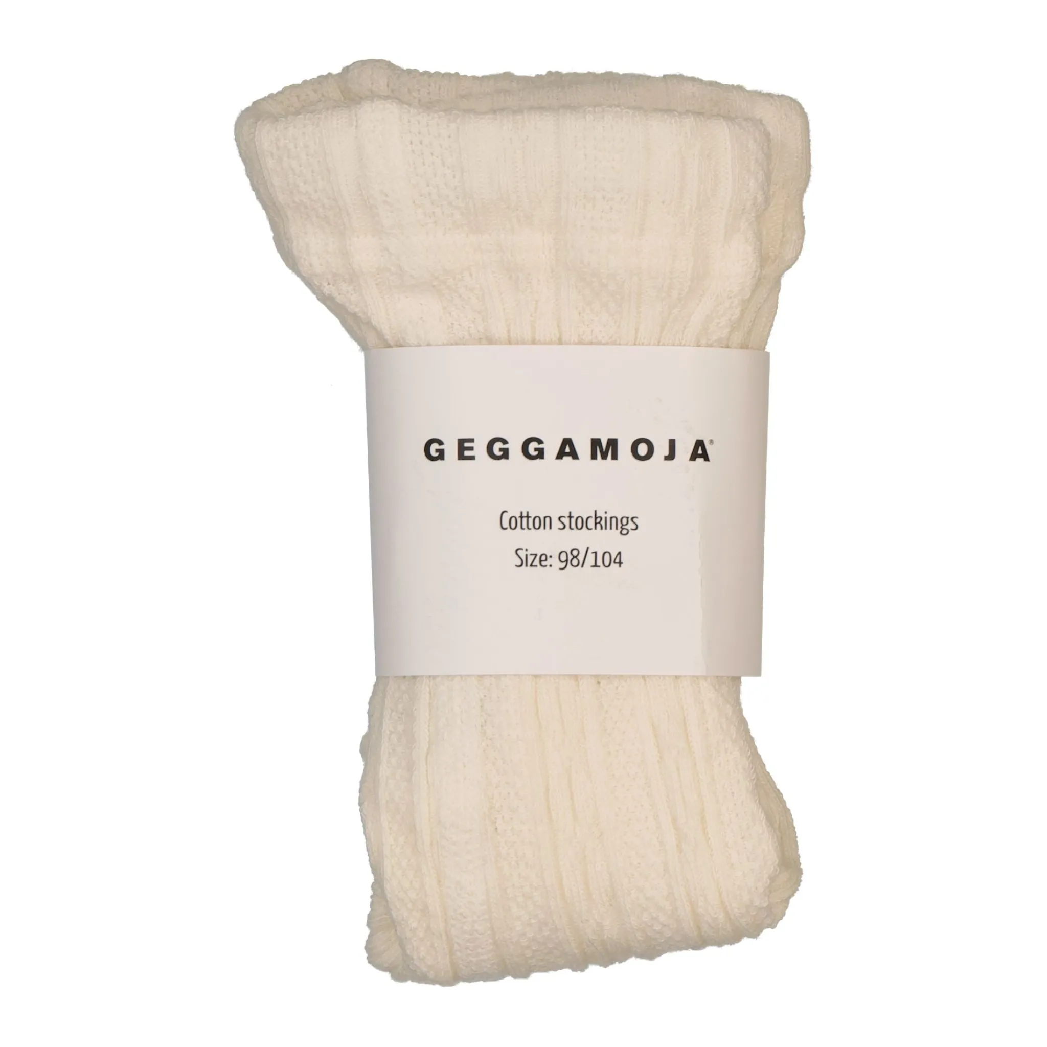 Flätstickade strumpbyxor i en mjuk bomullsblandning för alla barn. Matcha enkelt med klänning eller ha dem som extra värmande under byxor.