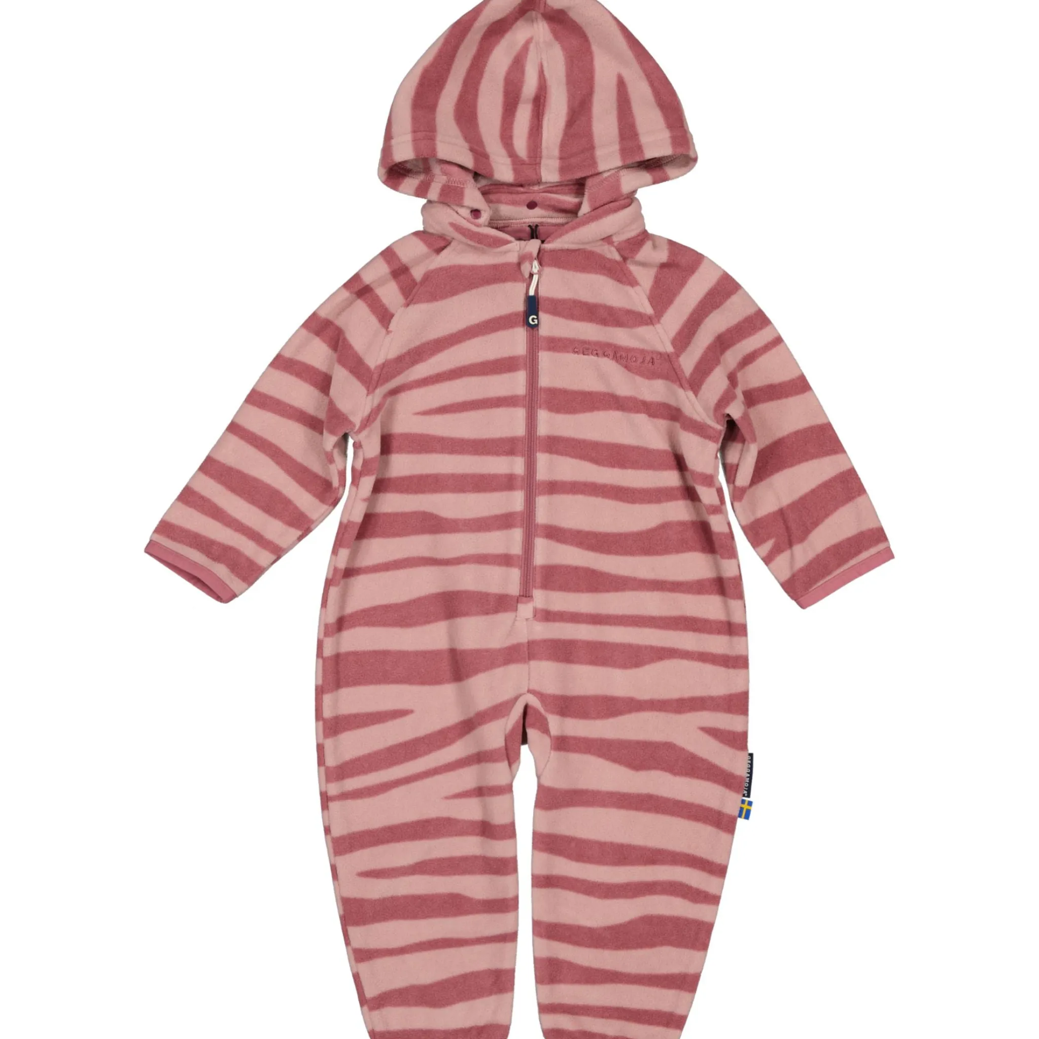 Värmande, bekväm och skön. Den här fleeceoverallen är den perfekta kombinationen av värme, mjukhet och smidighet – precis vad de minsta behöver. Perfekt att ha som lager 2 eller som den är under mildare dagar. Overallen har ett blixtlås fram för enkel påklädning och de elastiska kantbanden i ärm- och benslut ser till att plagget sitter skönt utan att glida upp. Den avtagbara luvan ger extra flexibilitet – skön när det behövs, och lätt att ta av när den inte gör det. En gosig och praktisk overall som håller små upptäckare varma och bekväma – redo för både lek och vila.