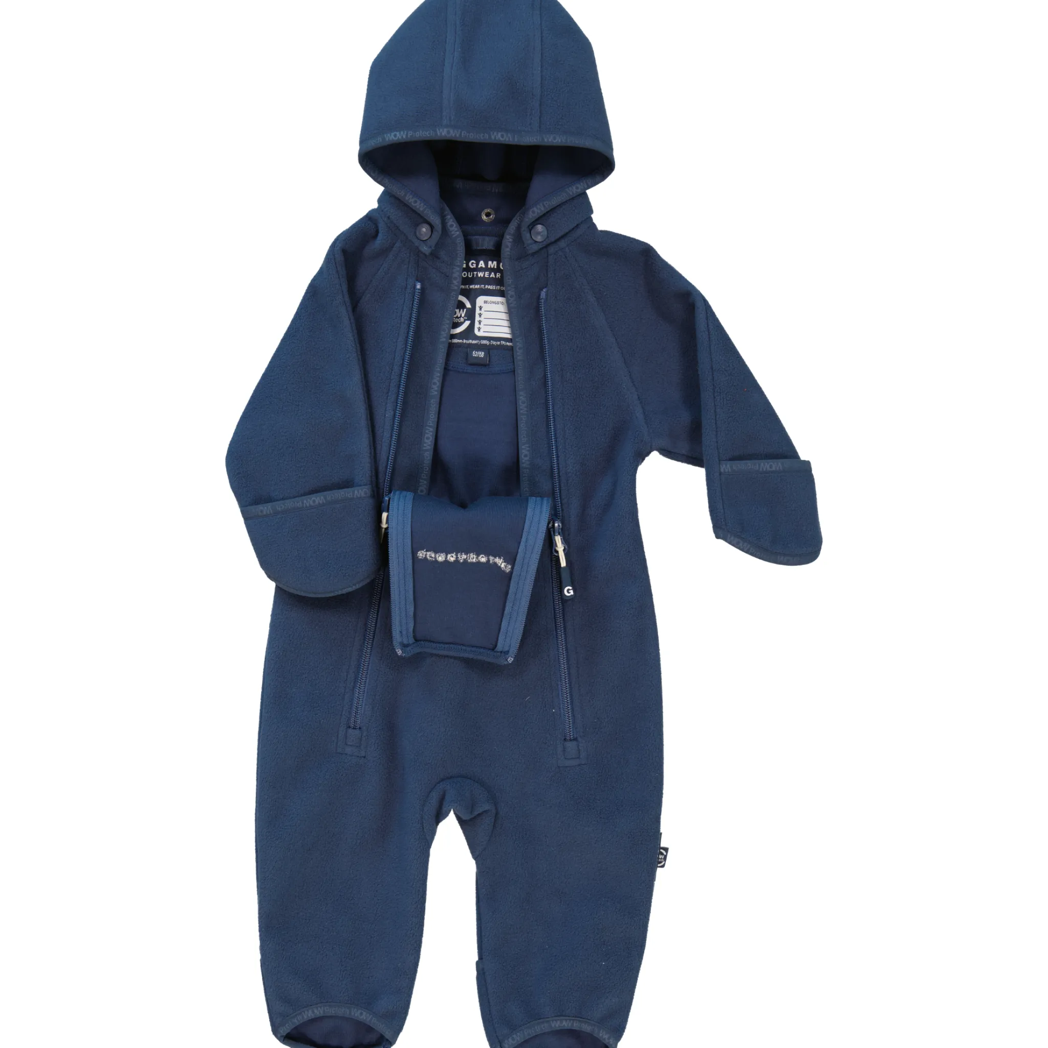 Den här funktionella overallen är skapad för att hålla små barn varma, torra och bekväma under utelek och vagnpromenader – från nyfödd upp till ca 2 år (storlek 50/56–86/92). Med ett mjukt innerfoder och ett vindtätt, vattenavvisande yttermaterial skyddar overallen mot kyla och blåst utan att begränsa rörelseförmågan.