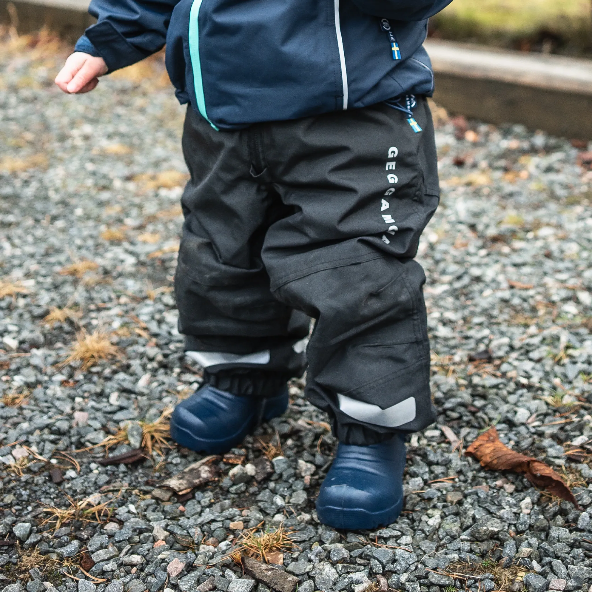 Dessa funktionella skalbyxor är både tåliga och bekväma – perfekta för lek och äventyr. Förstärkningar på knän och bakdel ger extra hållbarhet, medan den reglerbara midjan med elastisk snodd säkerställer en bra passform. De justerbara och avtagbara hängslena gör att byxorna kan anpassas efter behov, och resår i bensluten tillsammans med elastiska skohällor håller dem på plats hela dagen. En praktisk och slitstark byxa som tål både bus och väder