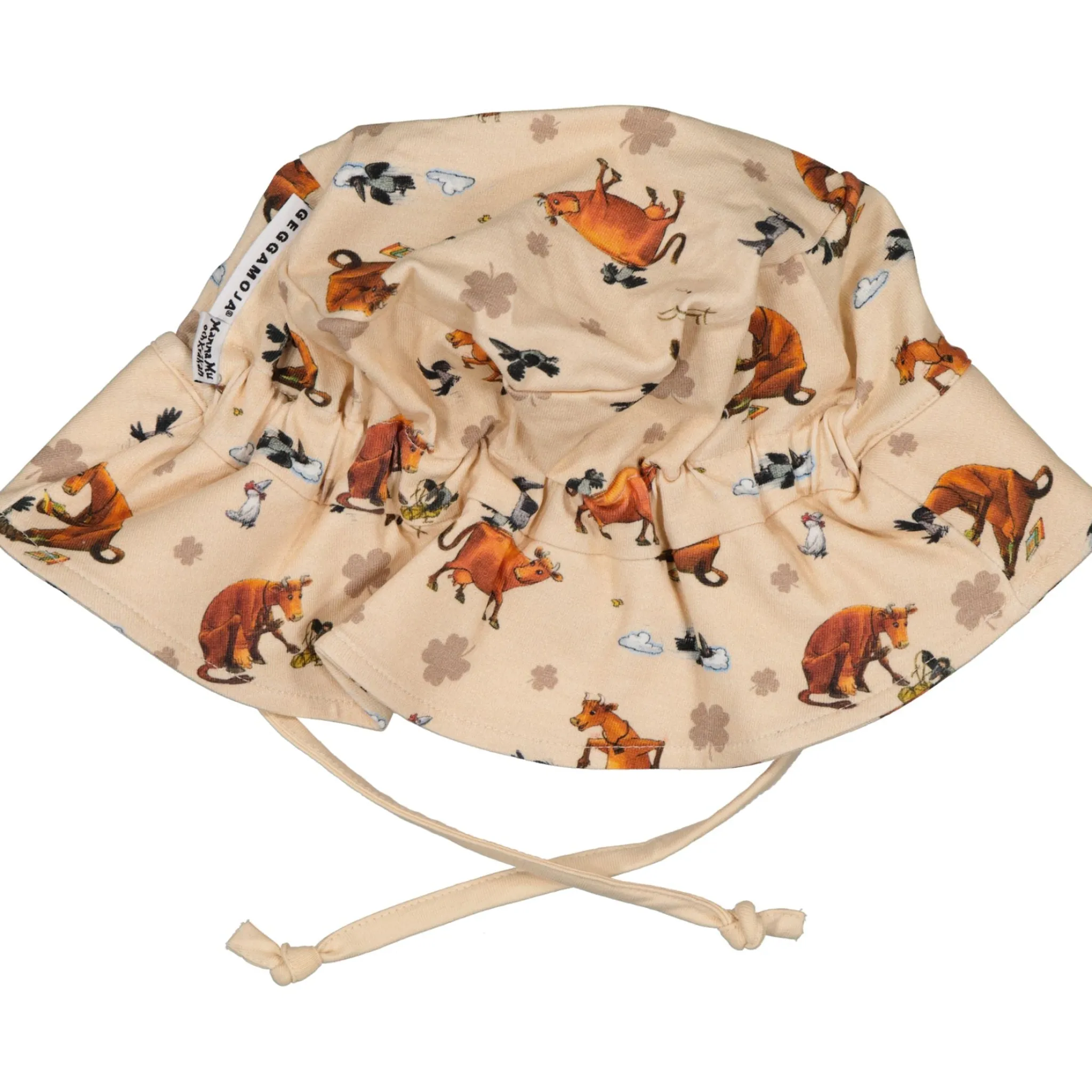 Skydda små huvuden med en mjuk solhatt från Mamma Mu-kollektionen. Den stretchiga bomullsblandningen sitter bekvämt och följer med i leken – oavsett om ni är på stranden, i vagnen eller på gården.