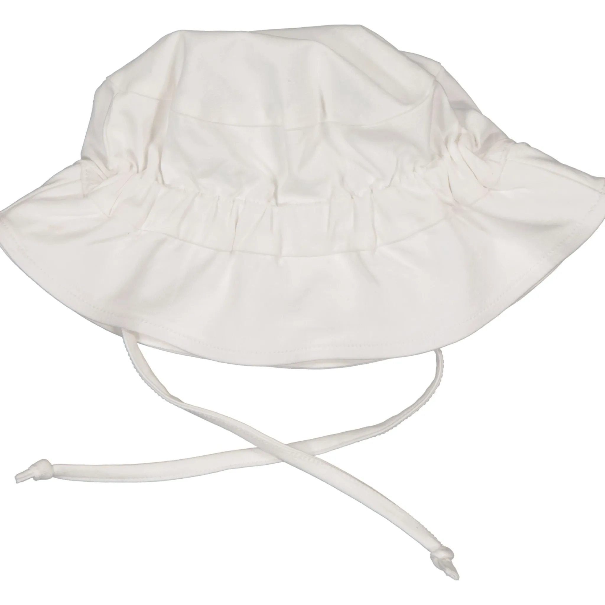 Skydda ditt barns huvud med en Solhatt i vitt, resår i bak och knytsnören som håller den på plats. Solhatten är tillverkad i en sval bomull. För bästa passformen har solhatten snören för knyt under hakan samt resår på baksidan.