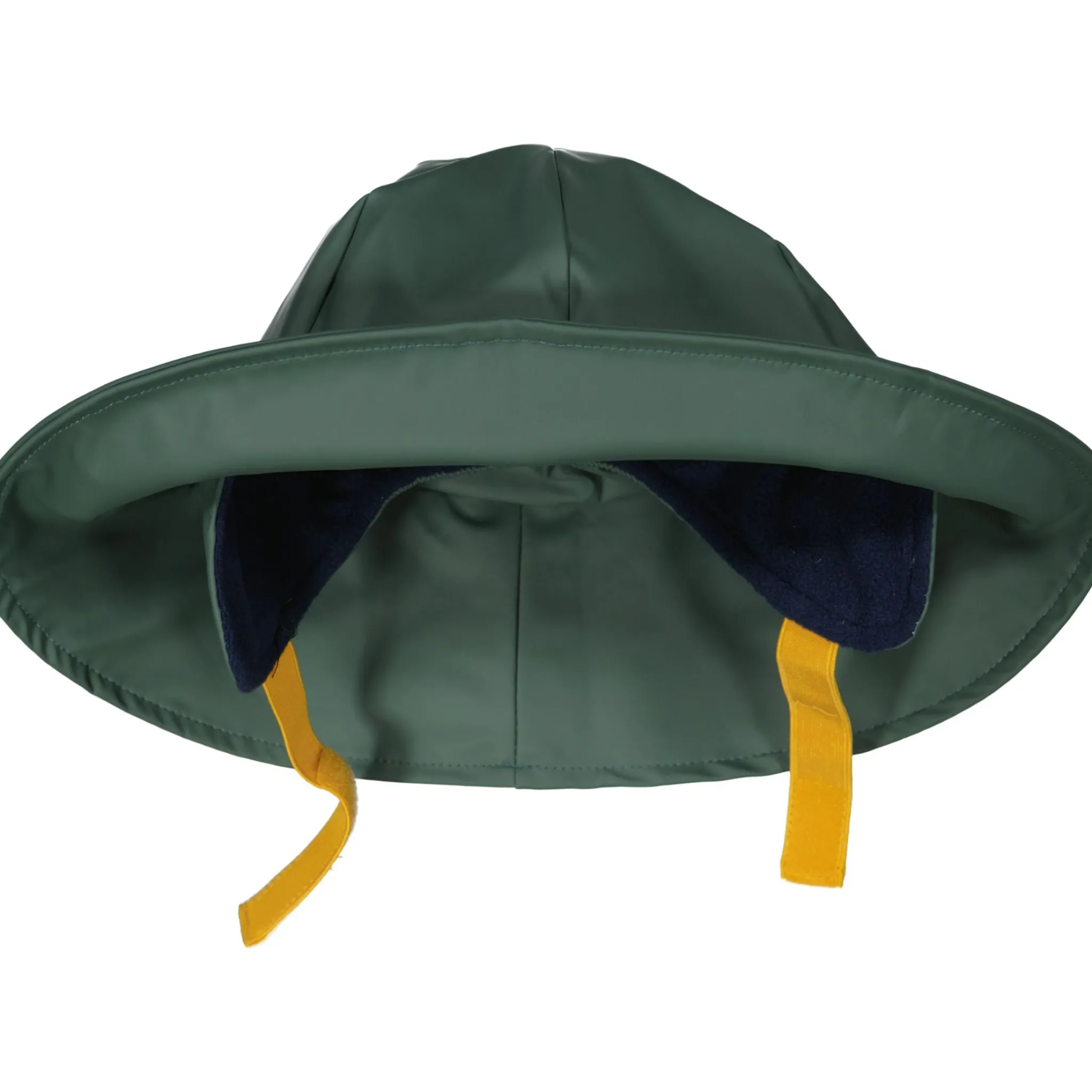 En regnhatt /mössa/Sydväst med ett härligt fleecefoder. Hatten har tejpade sömmar och vattenpelare på 8000 mm.