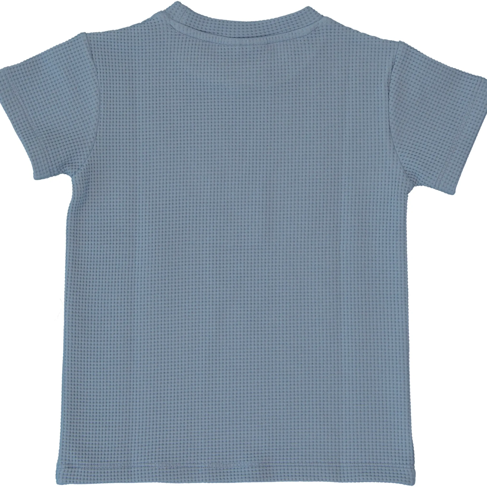 T-shirt i blå våfflad ekologisk bomull. Tygets struktur gör att den är mjuk, luftig och skön att bära.
