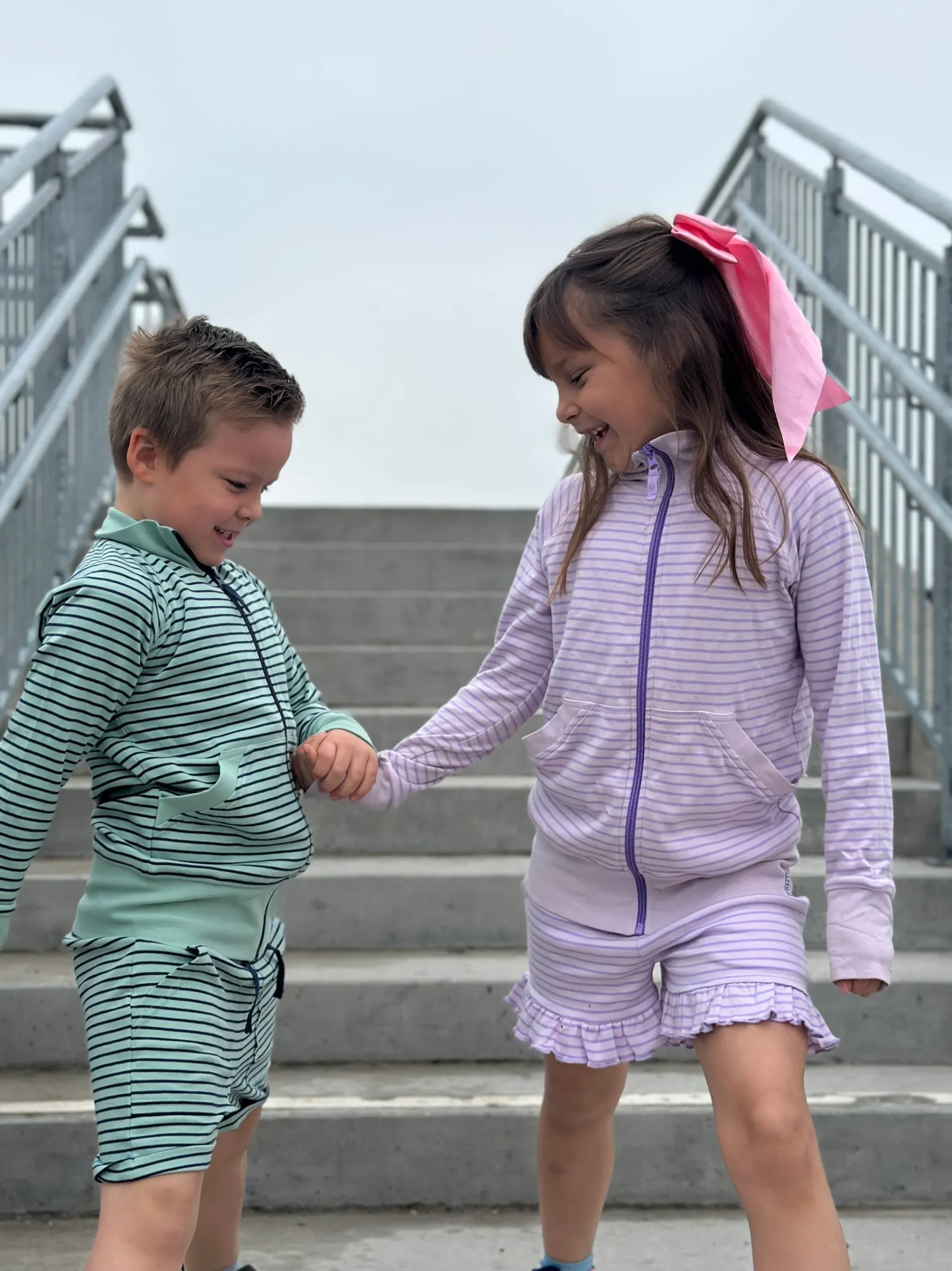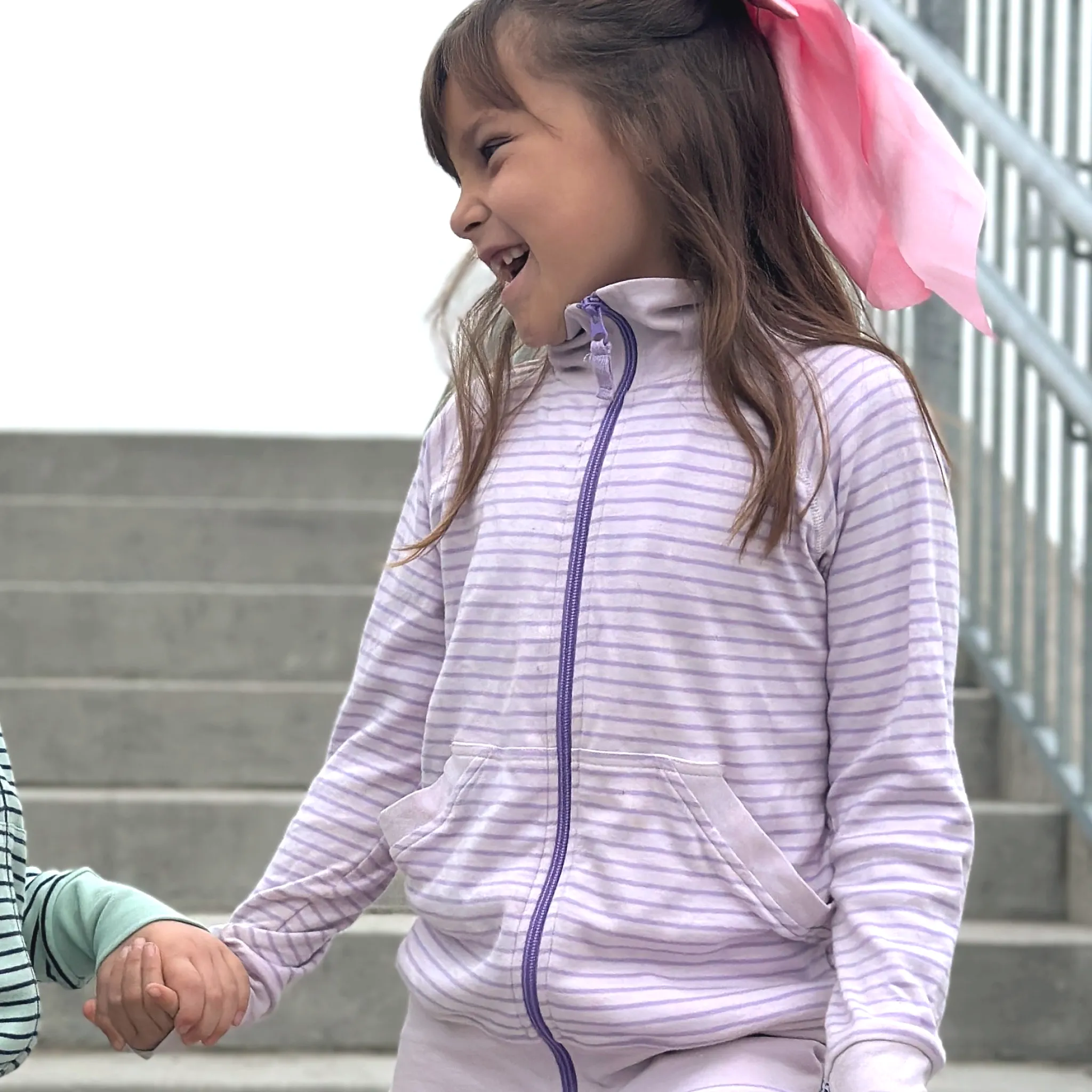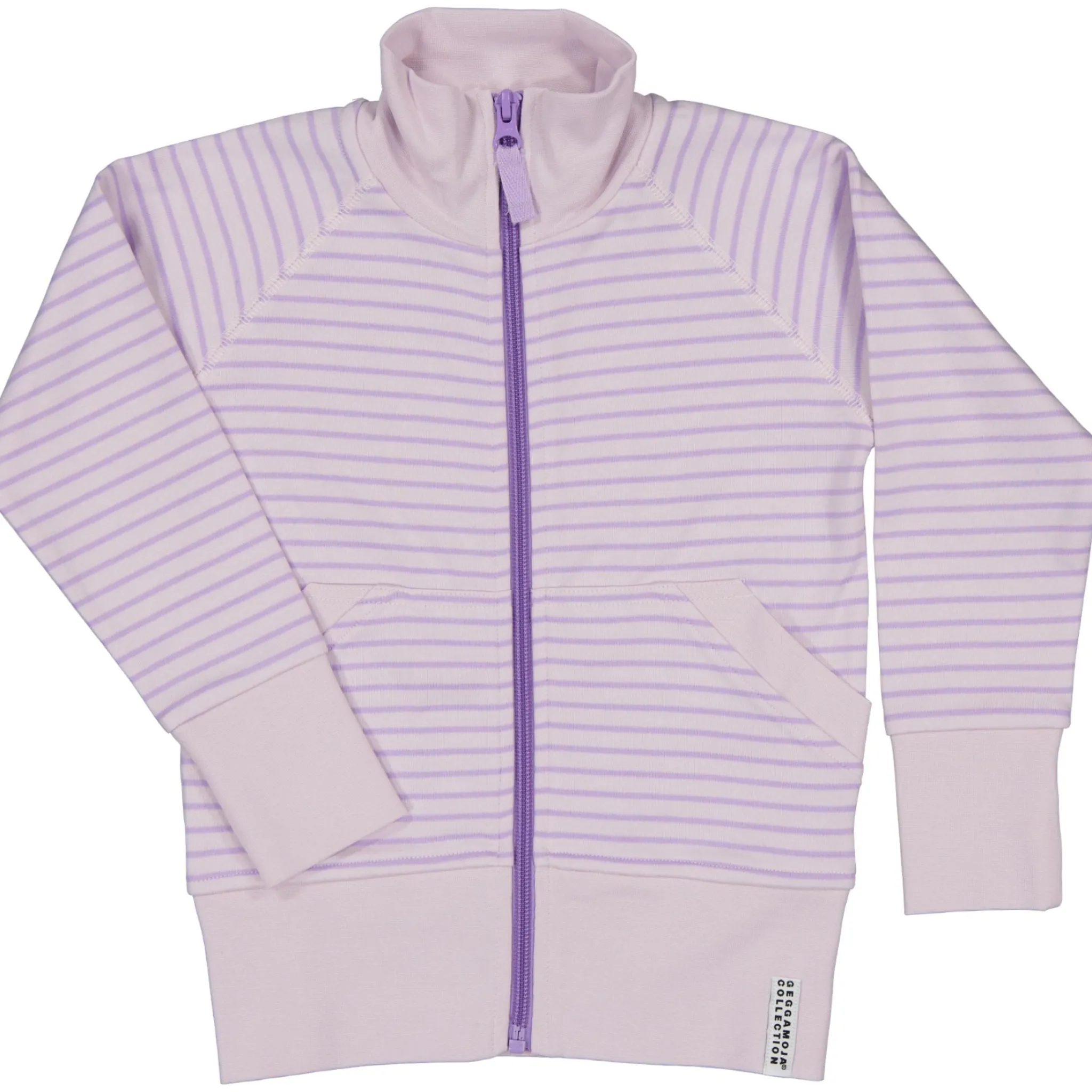 Zipjacka i härliga ränder. Bästa jackan som hängt med sen Geggamojas begynnelse, och som fortfarande är lika poppis! Bra som en lättare jacka ute eller som tröja inne över t-shirten. Breda sköna muddar för bästa komfort.