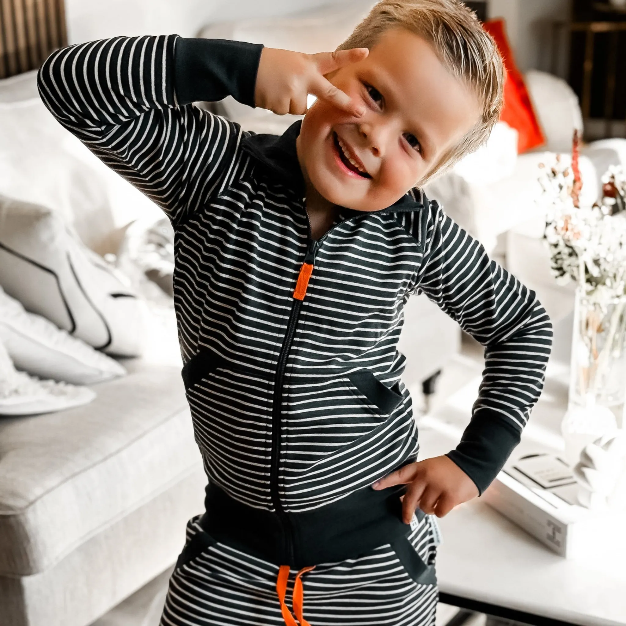 Zipjacka i härliga ränder. Bästa jackan som hängt med sen Geggamojas begynnelse, och som fortfarande är lika poppis! Bra som en lättare jacka ute eller som tröja inne över t-shirten. Breda sköna muddar för bästa komfort.