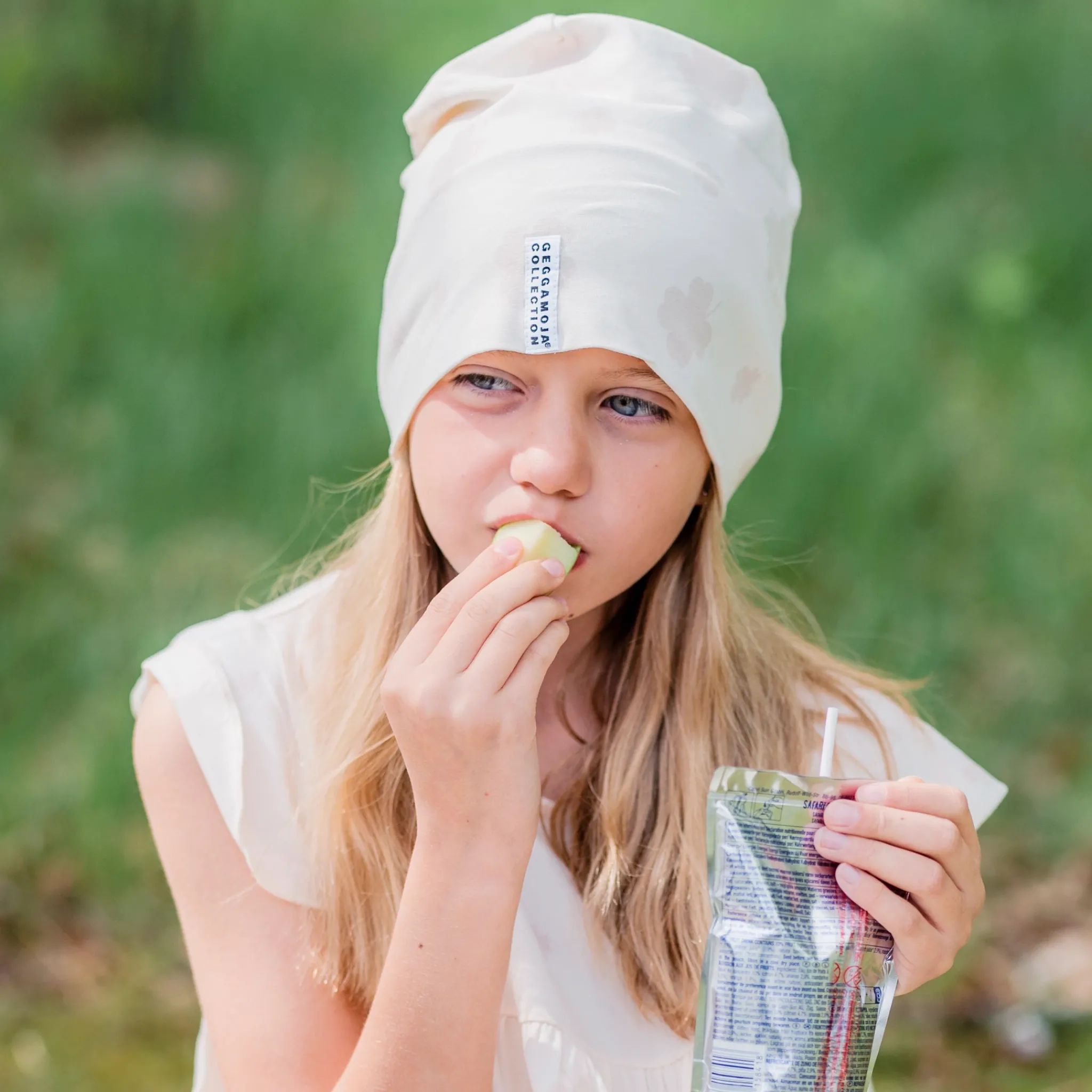 En mössa i mjuk och skön bambu/bomull. Passar vår, sommar och höst. Bambu är ett miljövänligt materialval, det odlas helt organiskt utan bekämpningsmedel och är 100 % biologiskt nedbrytbart. Bambu är lent och bekvämt mot huden och tillåter huden att andas. Dess termiska egenskaper, liksom ull och silke, gör att materialet känns varmt när det är kallt och svalt när det är varmt- ett perfekt material för barnkläder.