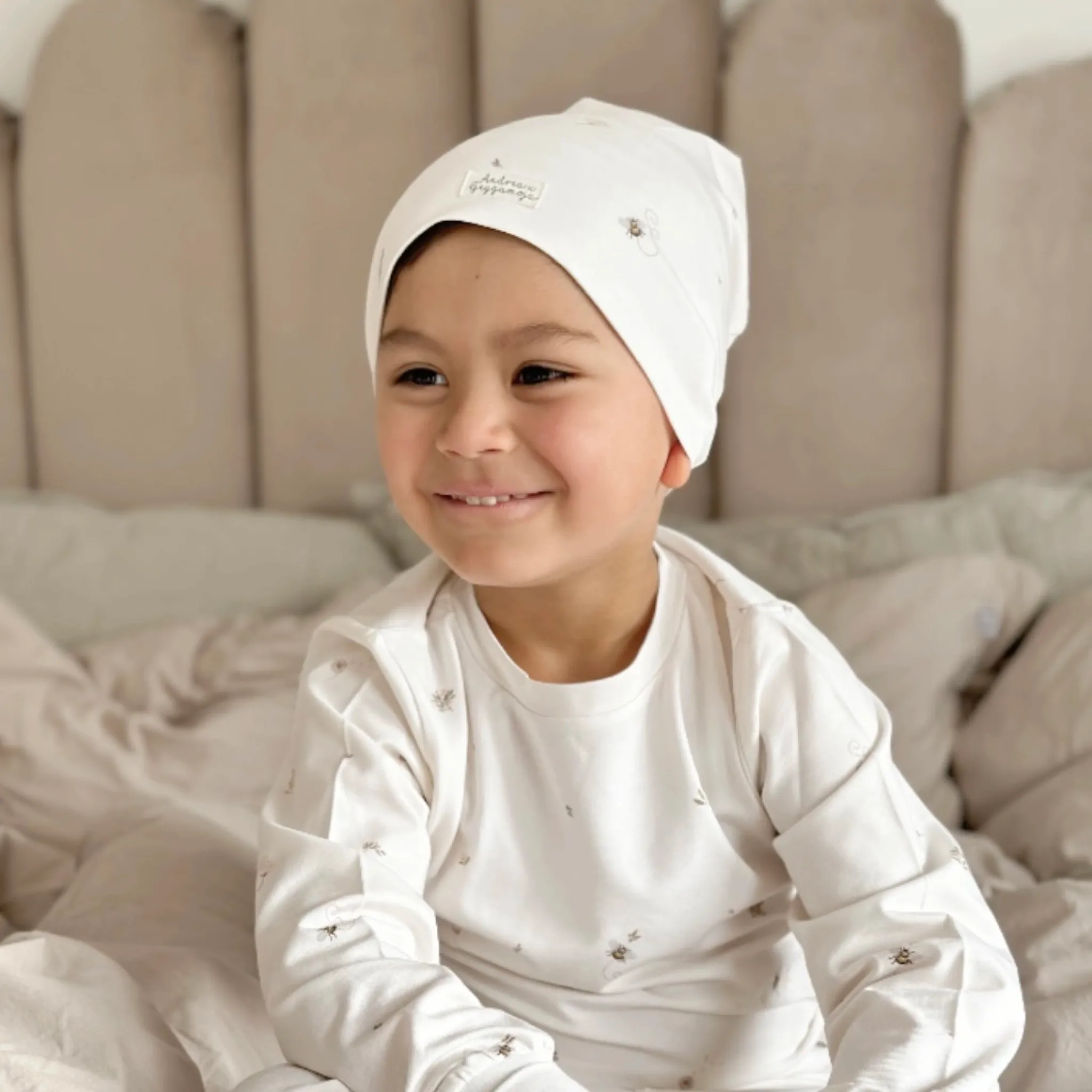 En mössa i mjuk och skön bambu/bomull. Passar vår, sommar och höst. Bambu är ett miljövänligt materialval, det odlas helt organiskt utan bekämpningsmedel och är 100 % biologiskt nedbrytbart. Bambu är lent och bekvämt mot huden och tillåter huden att andas. Dess termiska egenskaper, liksom ull och silke, gör att materialet känns varmt när det är kallt och svalt när det är varmt- ett perfekt material för barnkläder.