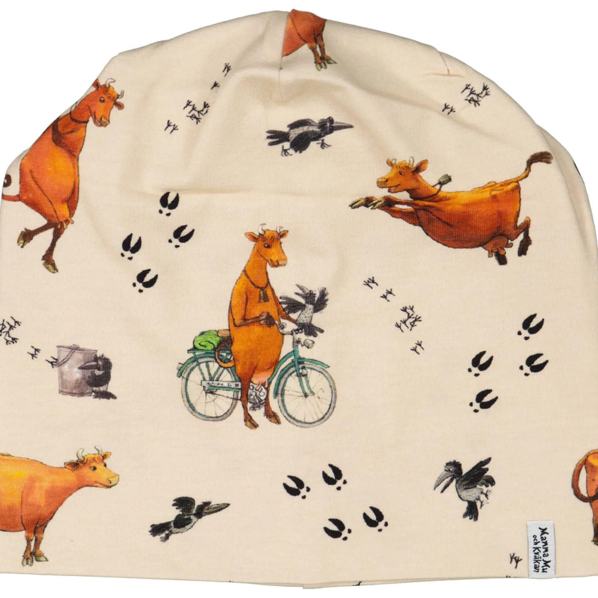 Mössa med Mamma Mu print. Mössan är i Ekologisk bomull och har Geggamojas härliga passform som passar alla, liten som stor.