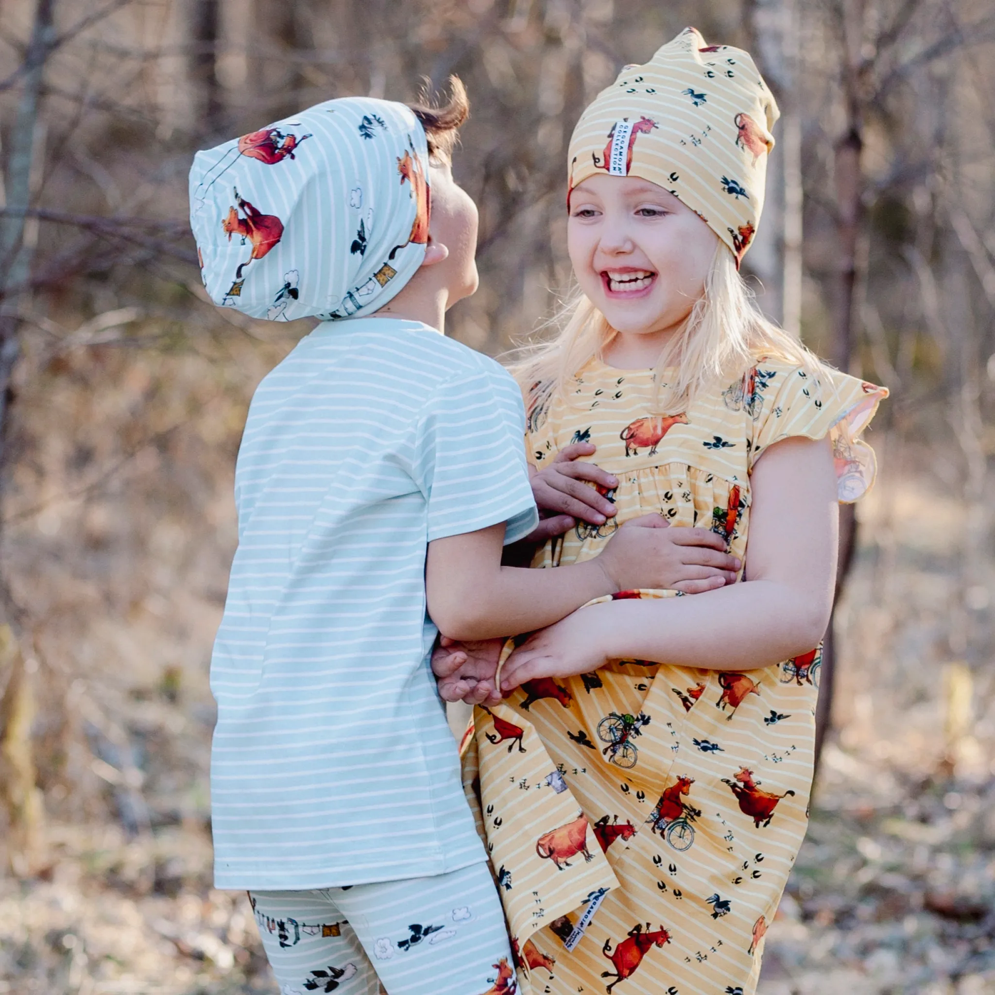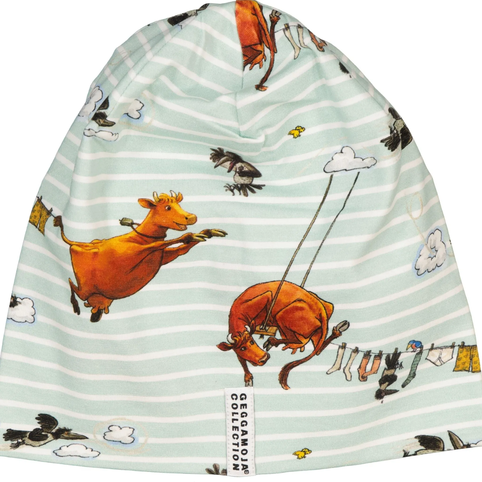 Mössa med Mamma Mu print. Mössan är i Ekologisk bomull och har Geggamojas härliga passform som passar alla, liten som stor.