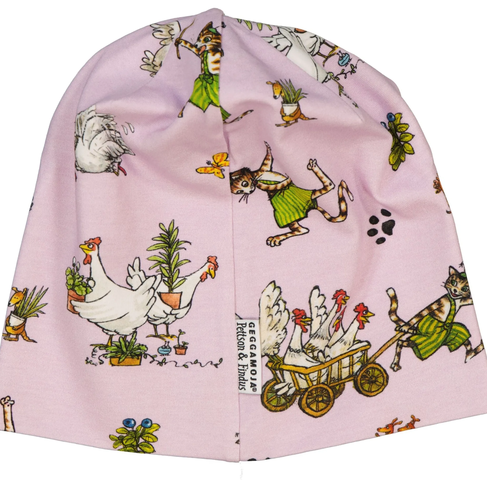 Mössa med Pettson och Findus. Mössan är i Ekologisk bomull och har Geggamojas härliga passform som passar alla, liten som stor.