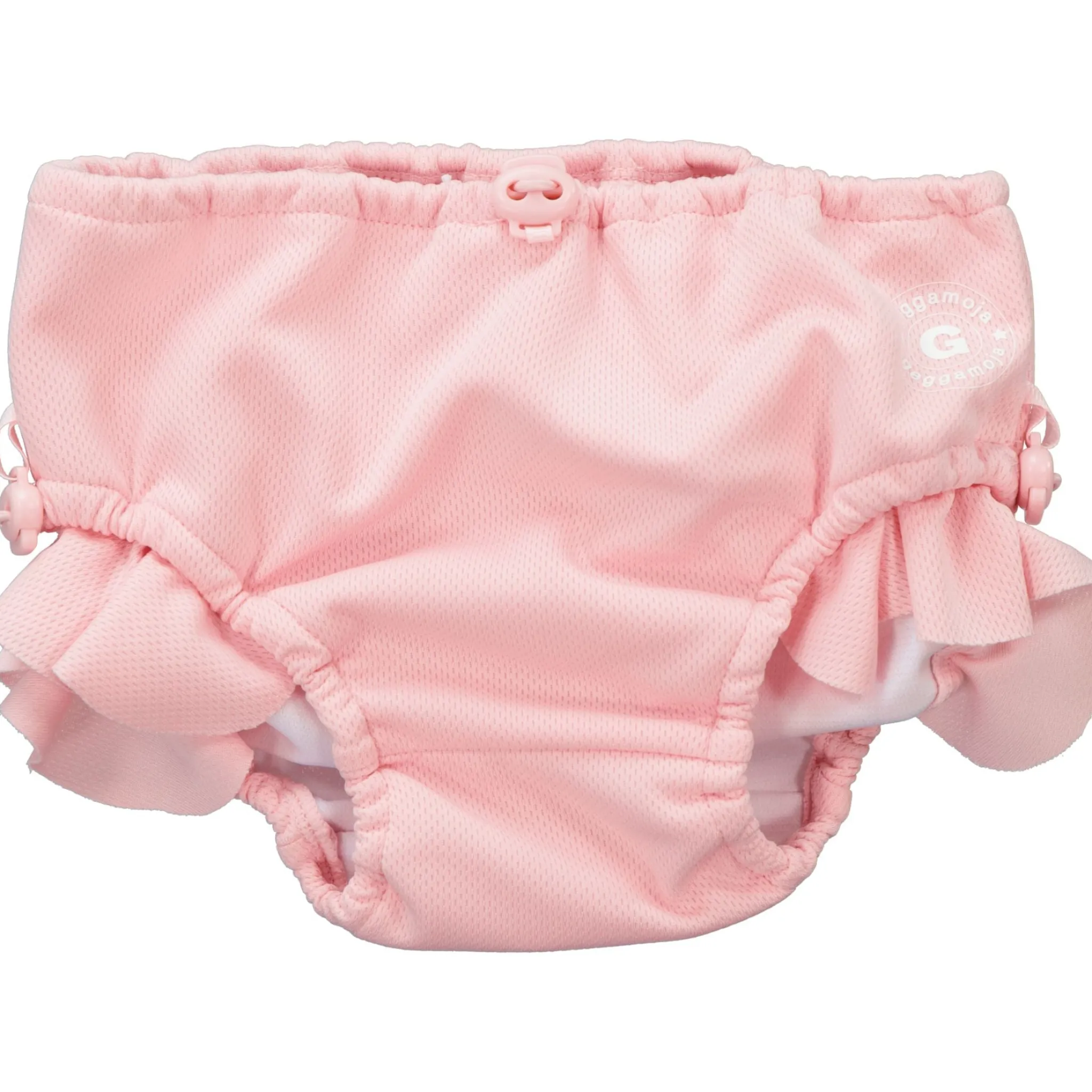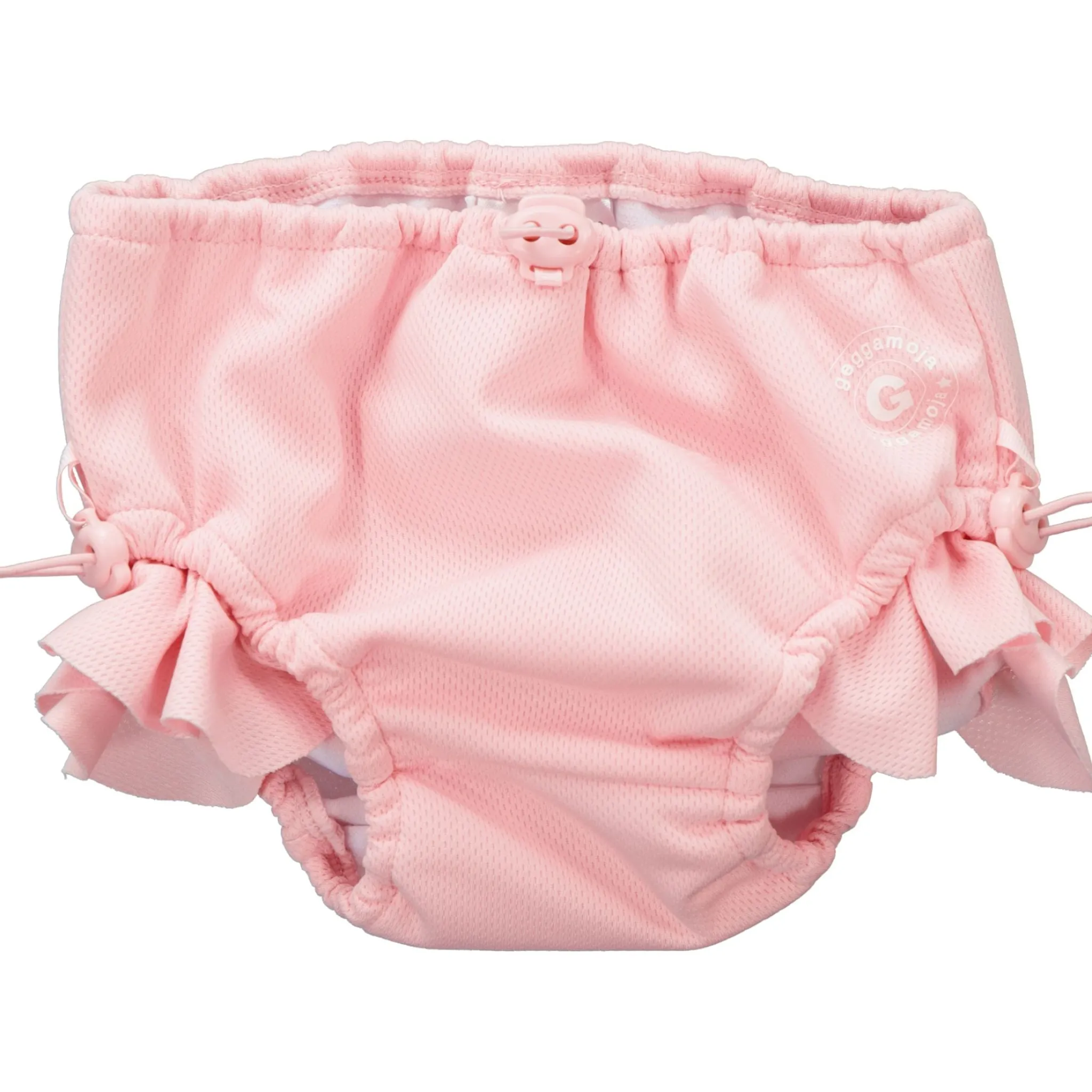 Geggamojas UV babybyxa, med UV50+ blockeras 98% av solens farliga UVA- och UVB-strålar. Justerbar resår med dragsko i midja och i benöppning för att se till att den sitter bekvämt och håller tätt även när den är blöt. Denna badbyxa är perfekt till babysim. Det behövs ingen extra blöja eller inlägg under badblöjan.