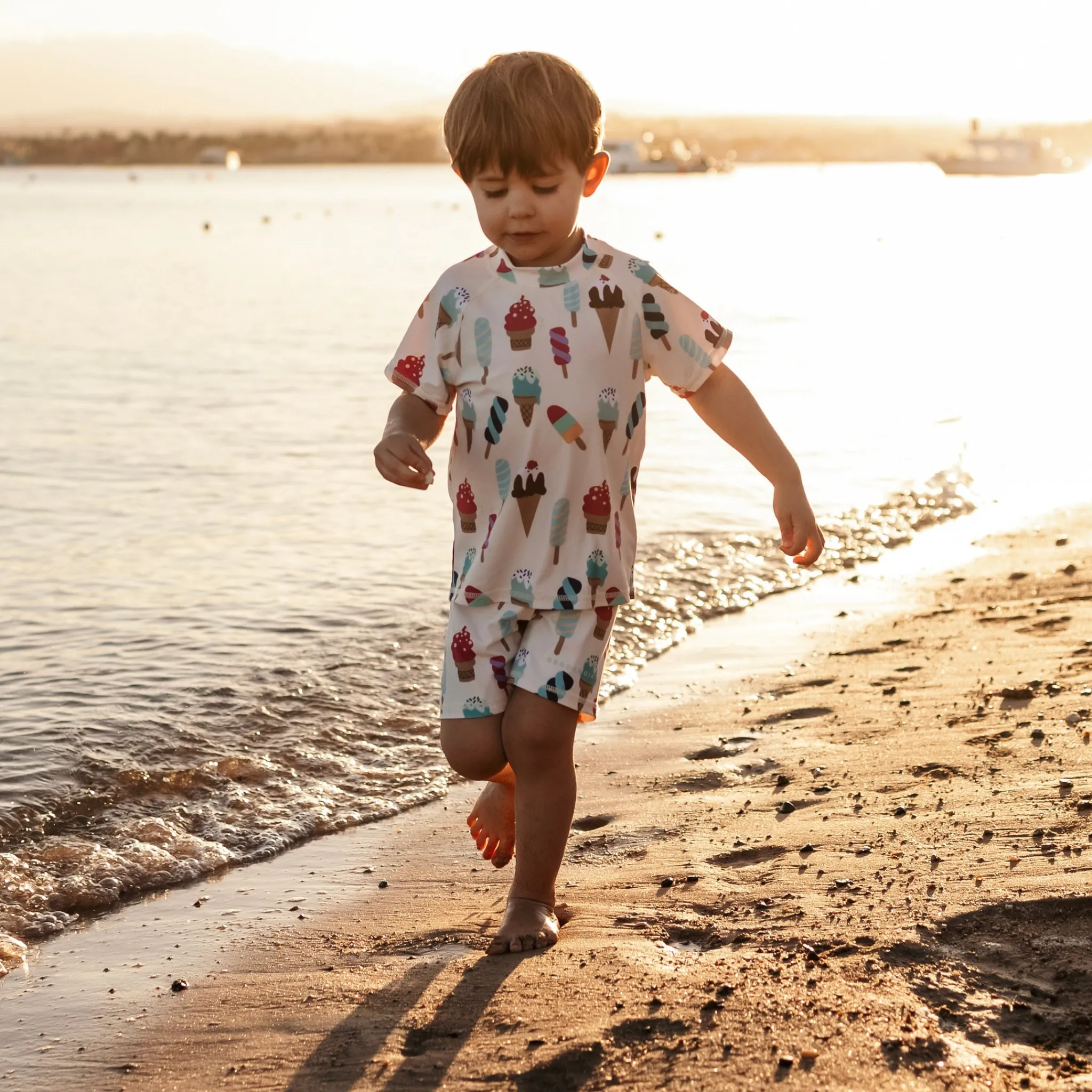 UV bad-set med långärmad tröja och shorts. Det är tillverkad i ett snabbtorkande material, med UV-50+ som blockerar 98% av solens farliga UVA- och UVB-strålar. En storfavorit hos barnfamiljer. Med ett UV-set skyddar du ditt barn från solens starka strålar.