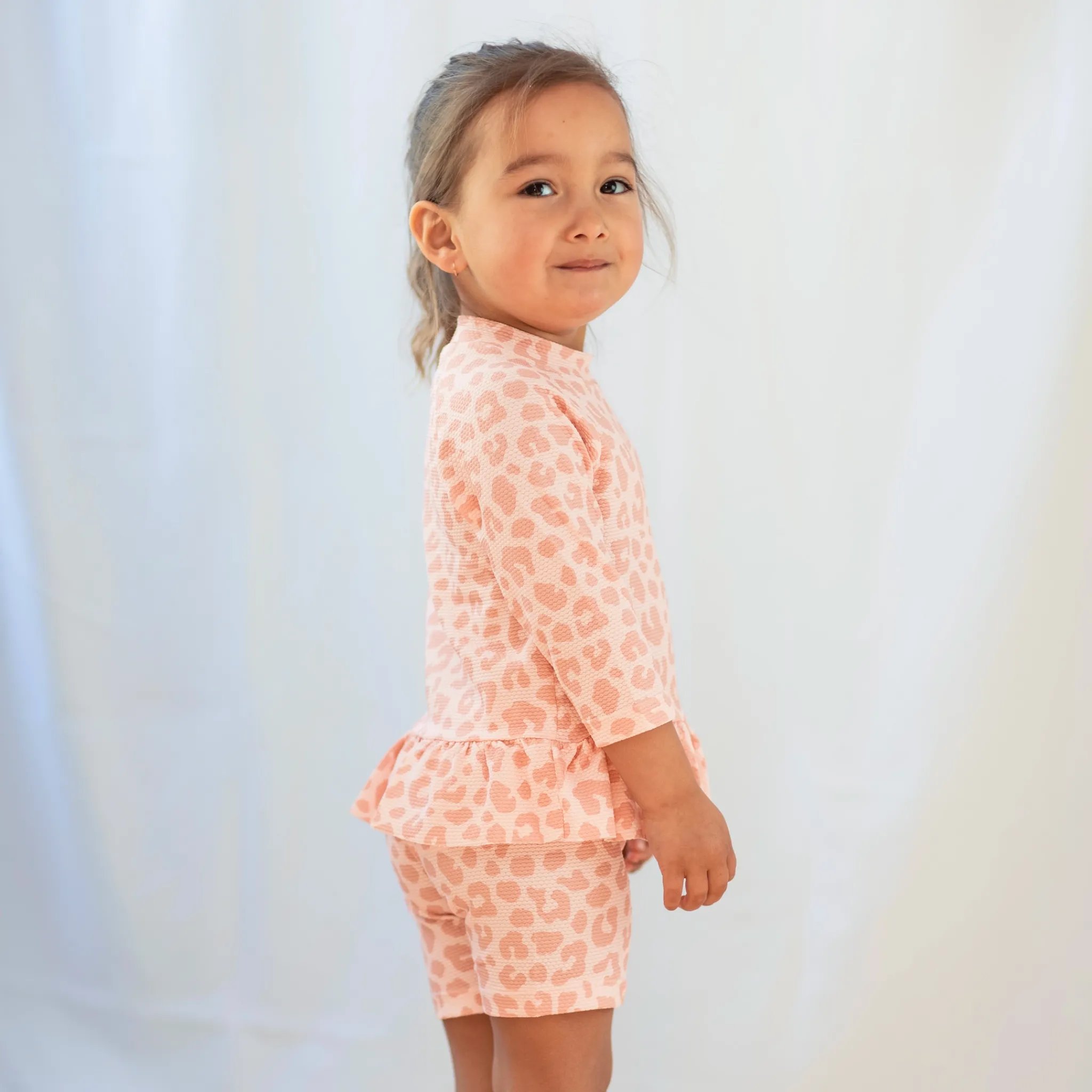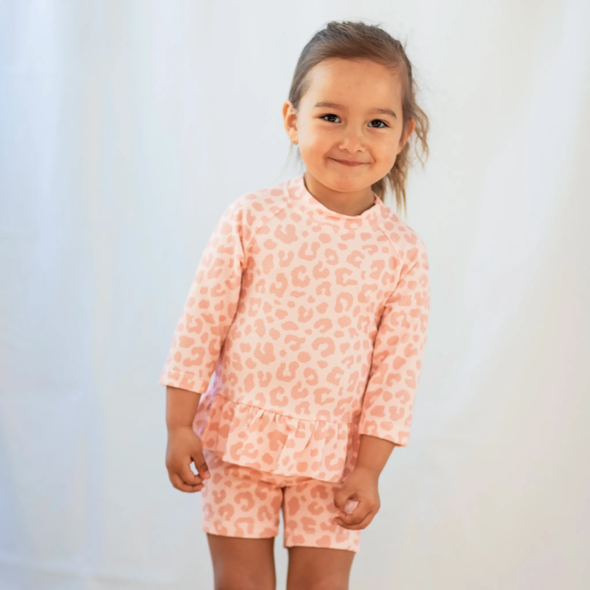 Rosa UV bad-set med kortärmad tröja och shorts. Det är tillverkad i ett snabbtorkande material, med UV-50+ som blockerar 98% av solens farliga UVA- och UVB-strålar. En storfavorit hos barnfamiljer. Med ett UV-set skyddar du ditt barn från solens starka strålar. Tröjan har en dragkedja framtill för enkel på- och avklädnad.
