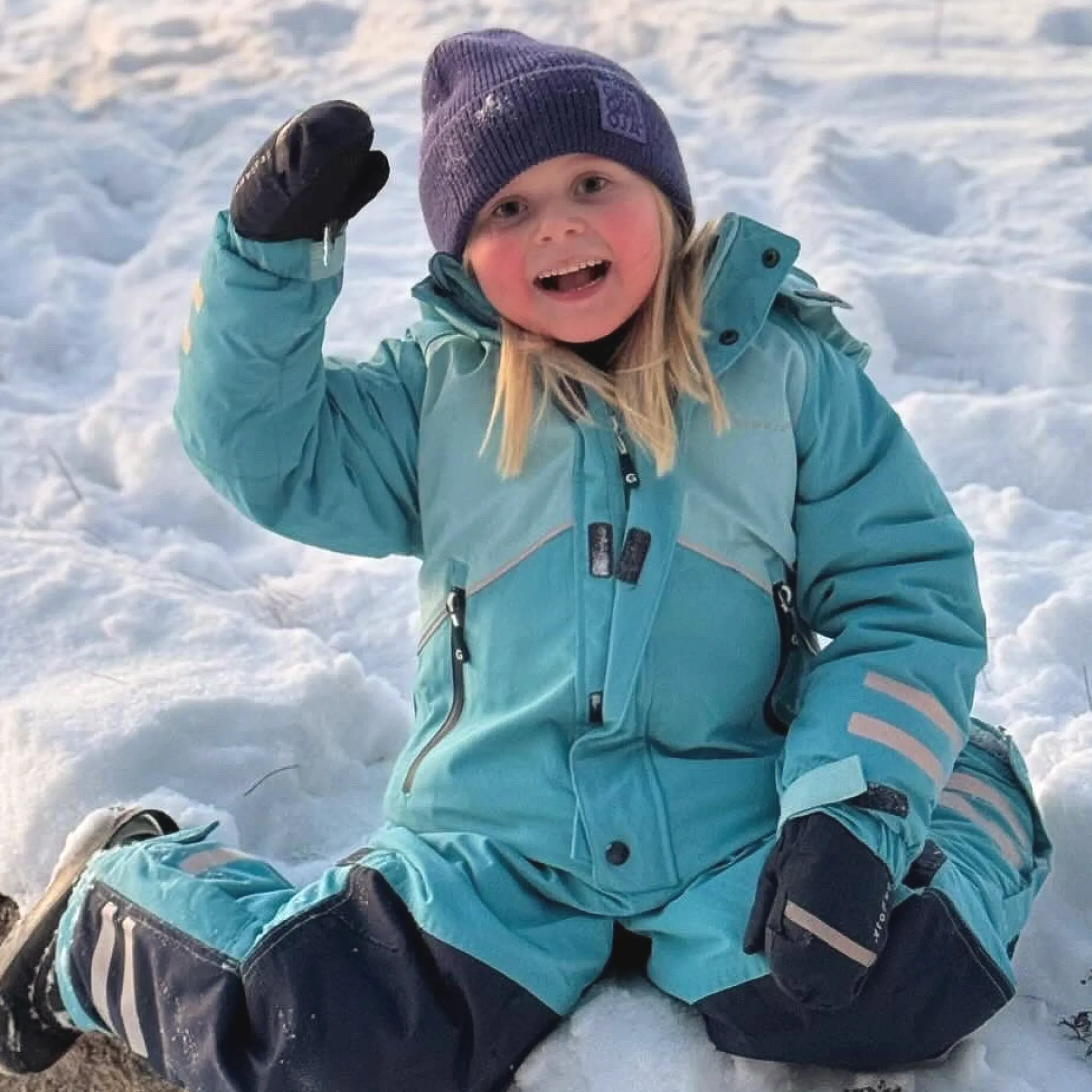 Stickad mössa i blå härlig färg. Mössan är stretchig och har en bra passform. Den har en vikt kant med Geggamojas logga på.