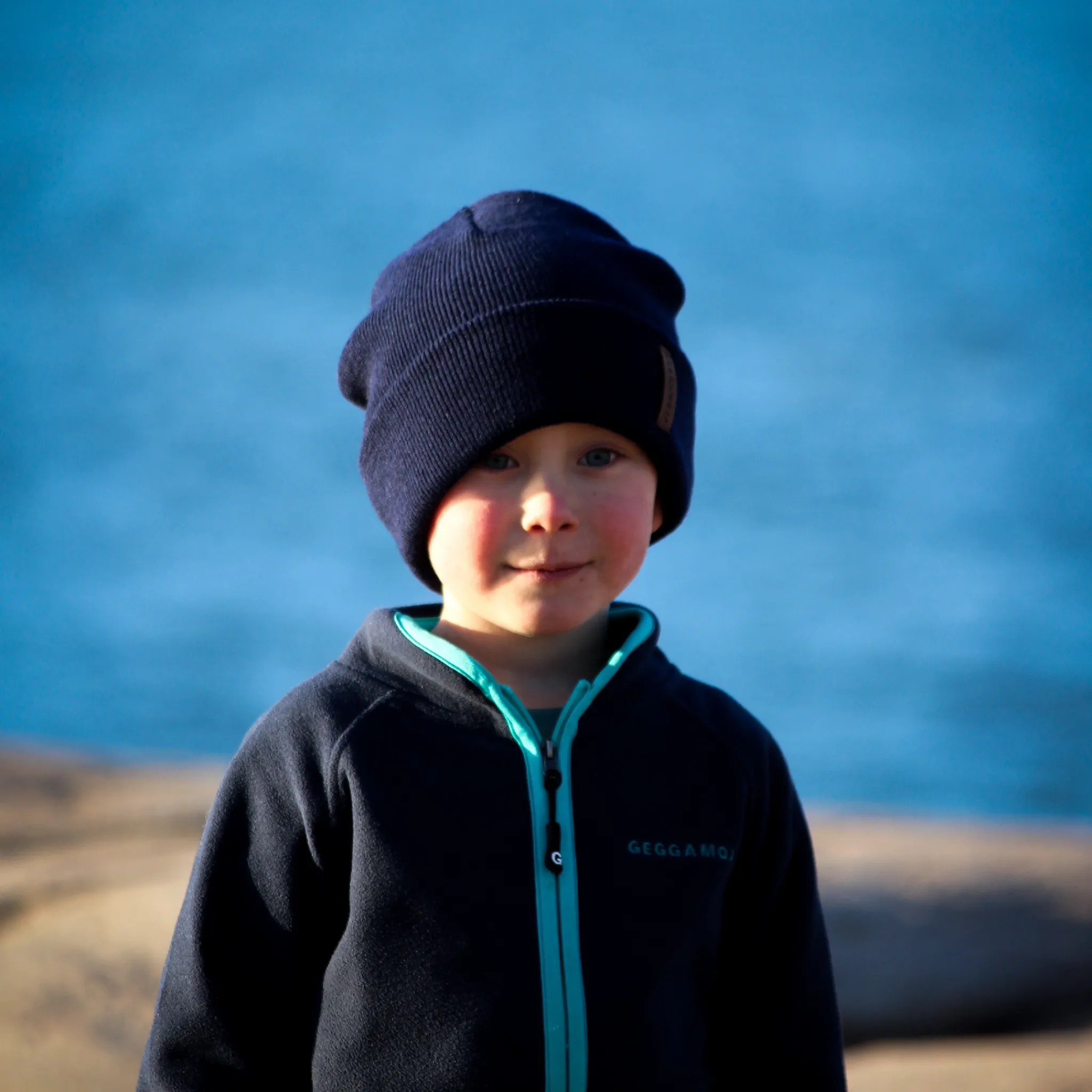 Stickad mössa i mörkblått. Mössan är stretchig och har en bra passform. Den har en vikt kant.