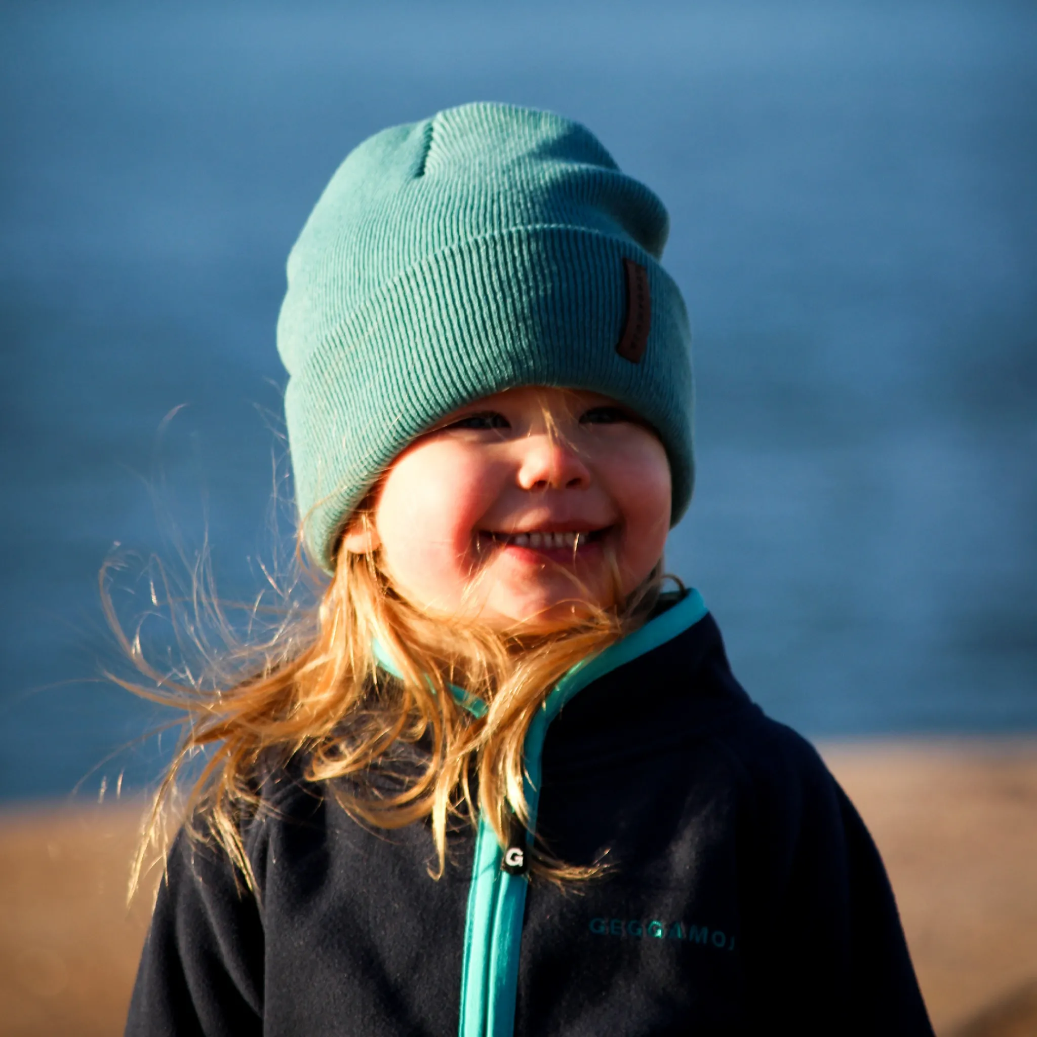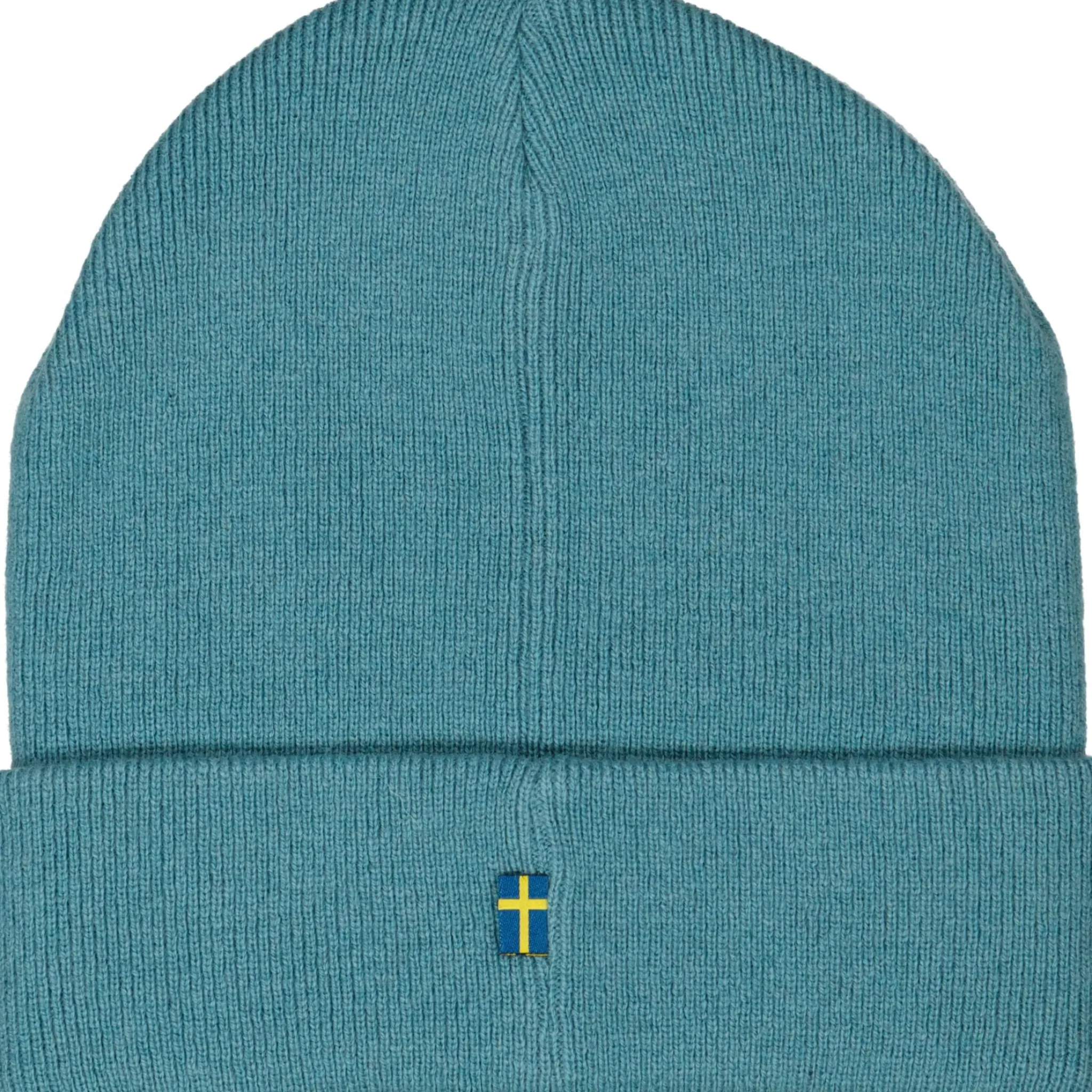 Stickad mössa i petrol. Mössan är stretchig och har en bra passform. Den har en vikt kant