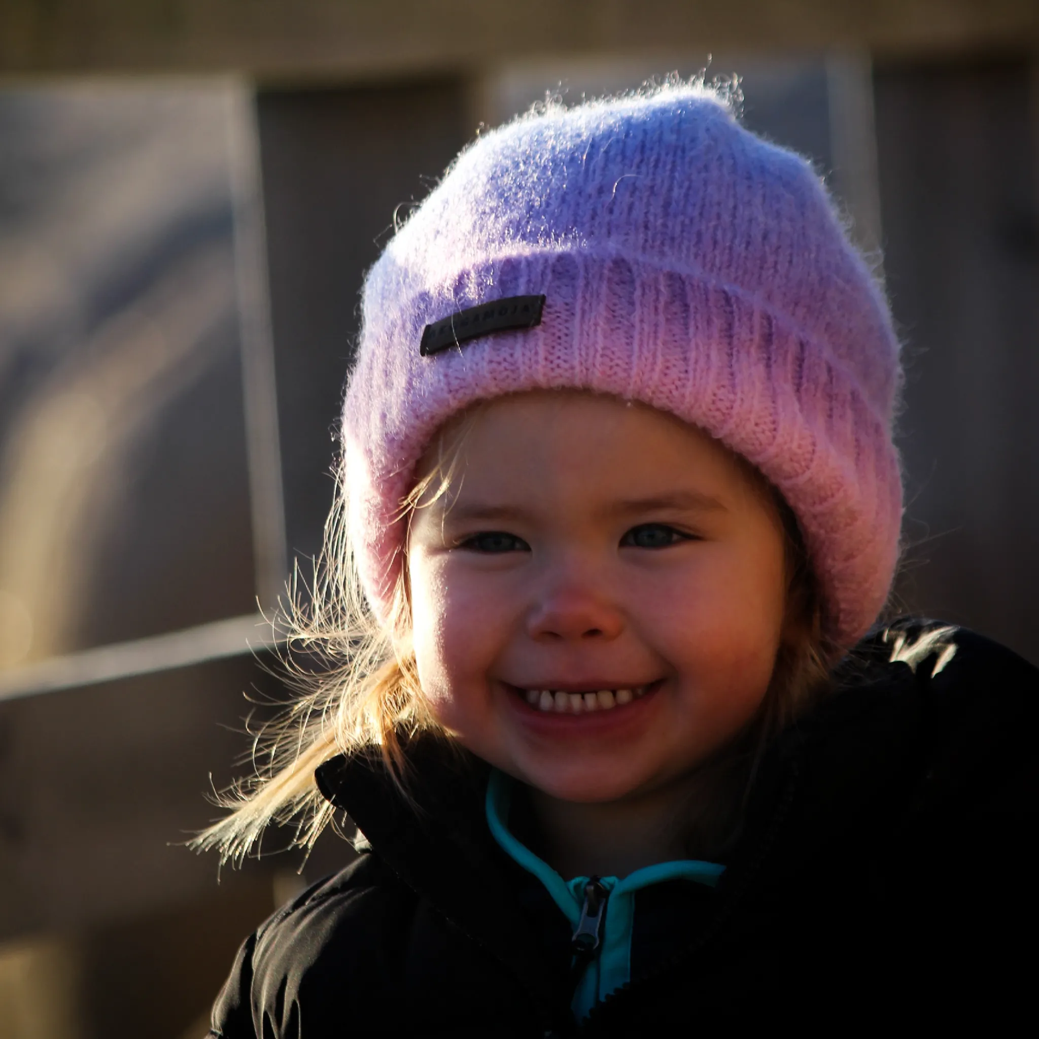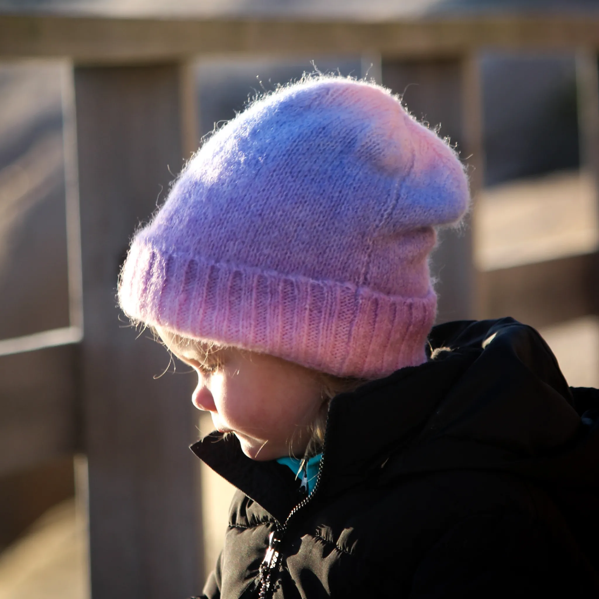Stickad mössa tillverkad i ull/akryl i härliga färger. Mössan har ett mjukt fleecefoder. En perfekt vintermössa till aktiva barn.