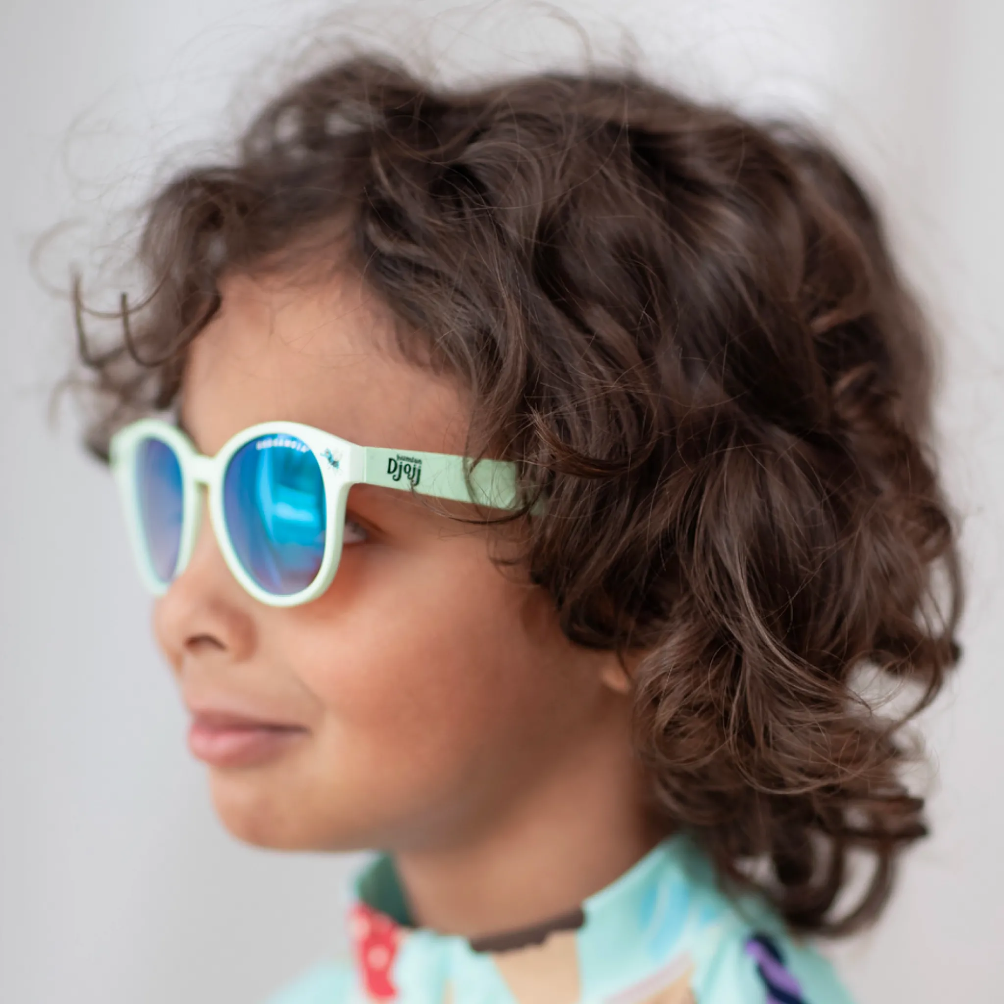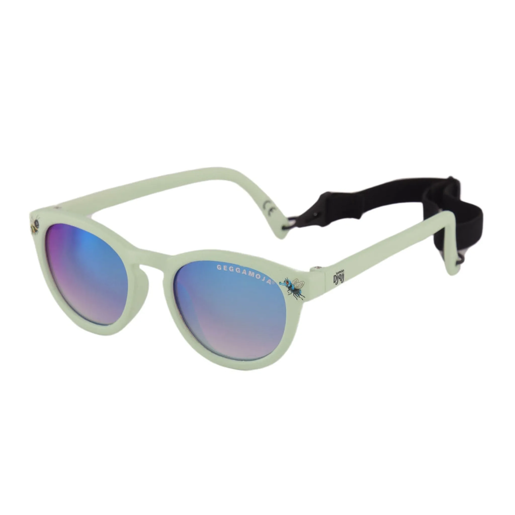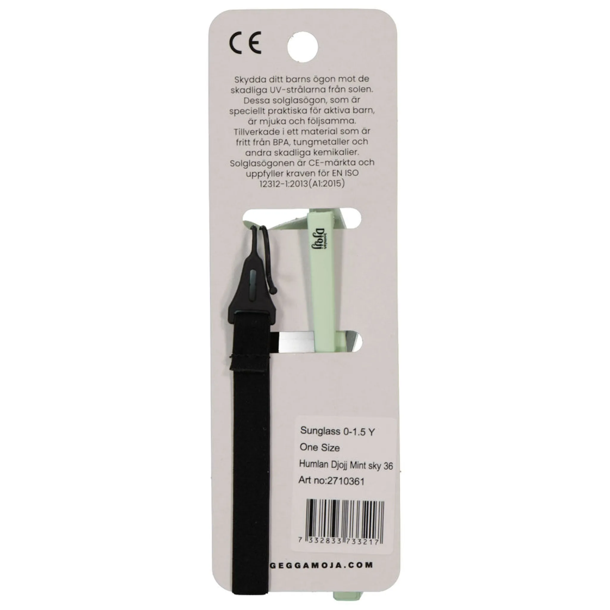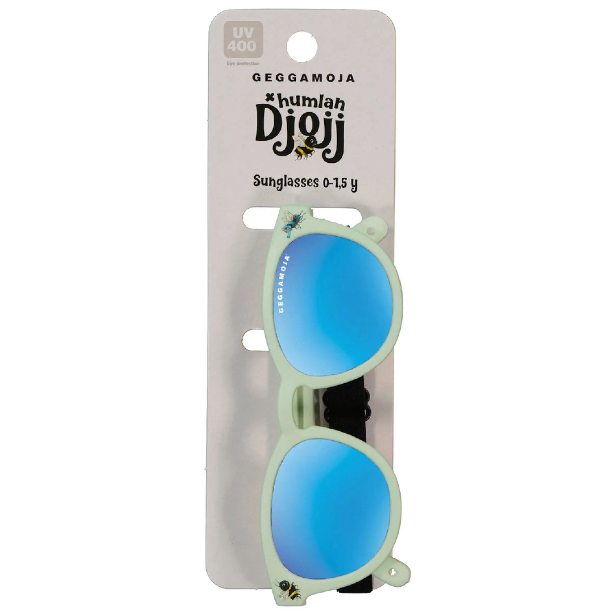 Söta och funktionella solglasögon för baby 0–1,5 år med motiv från Humlan Djojj i en mjuk mintgrön färg. De är designade för att skydda små barns känsliga ögon mot starkt solljus och passar perfekt under promenader, lek och utflykter utomhus.