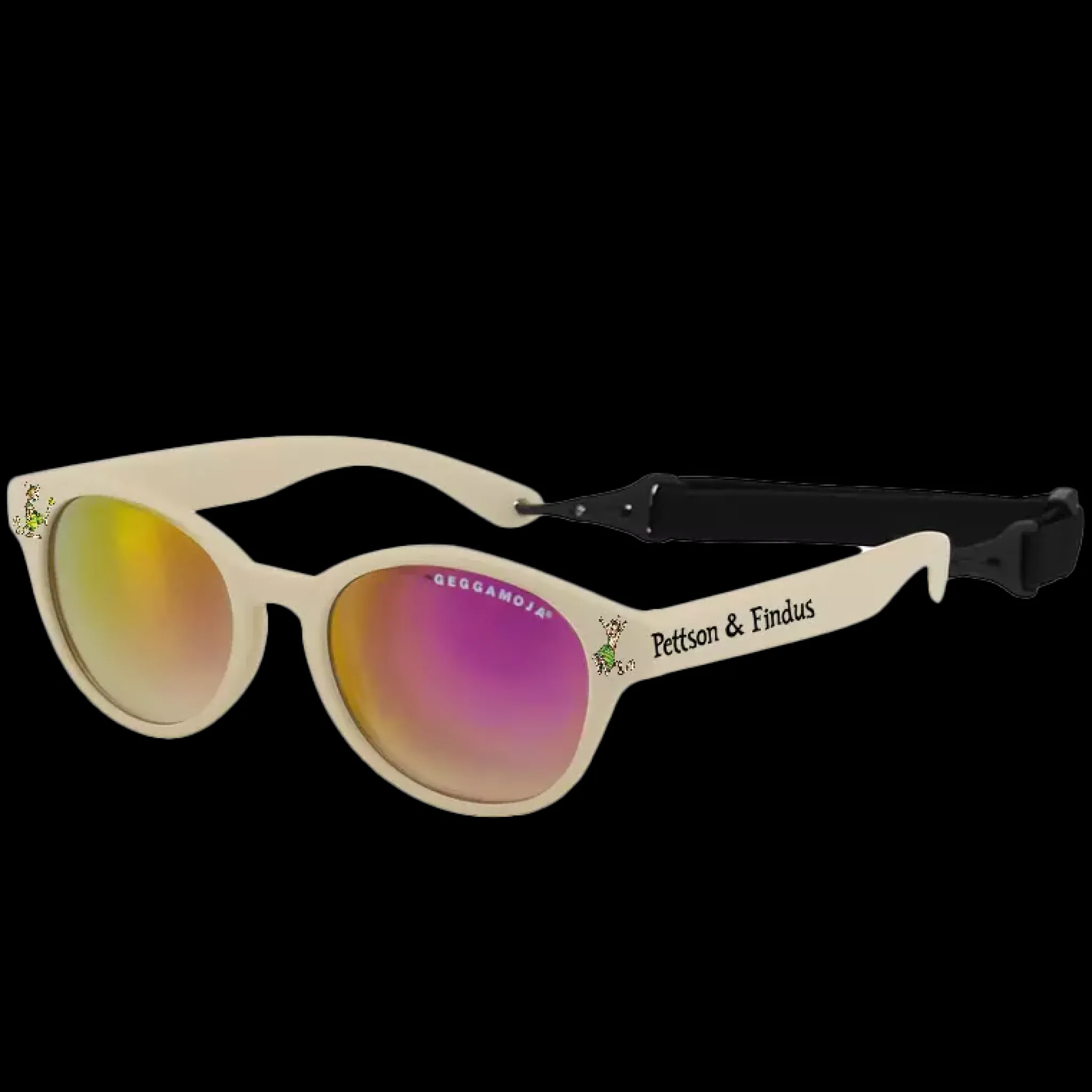 Bekväma solglasögon för barn 2–6 år i en mjuk beige färg med motiv från Pettson och Findus. De är designade för att ge barns ögon ett pålitligt skydd mot starkt solljus samtidigt som de sitter bekvämt under lek, utflykter och andra aktiviteter utomhus.