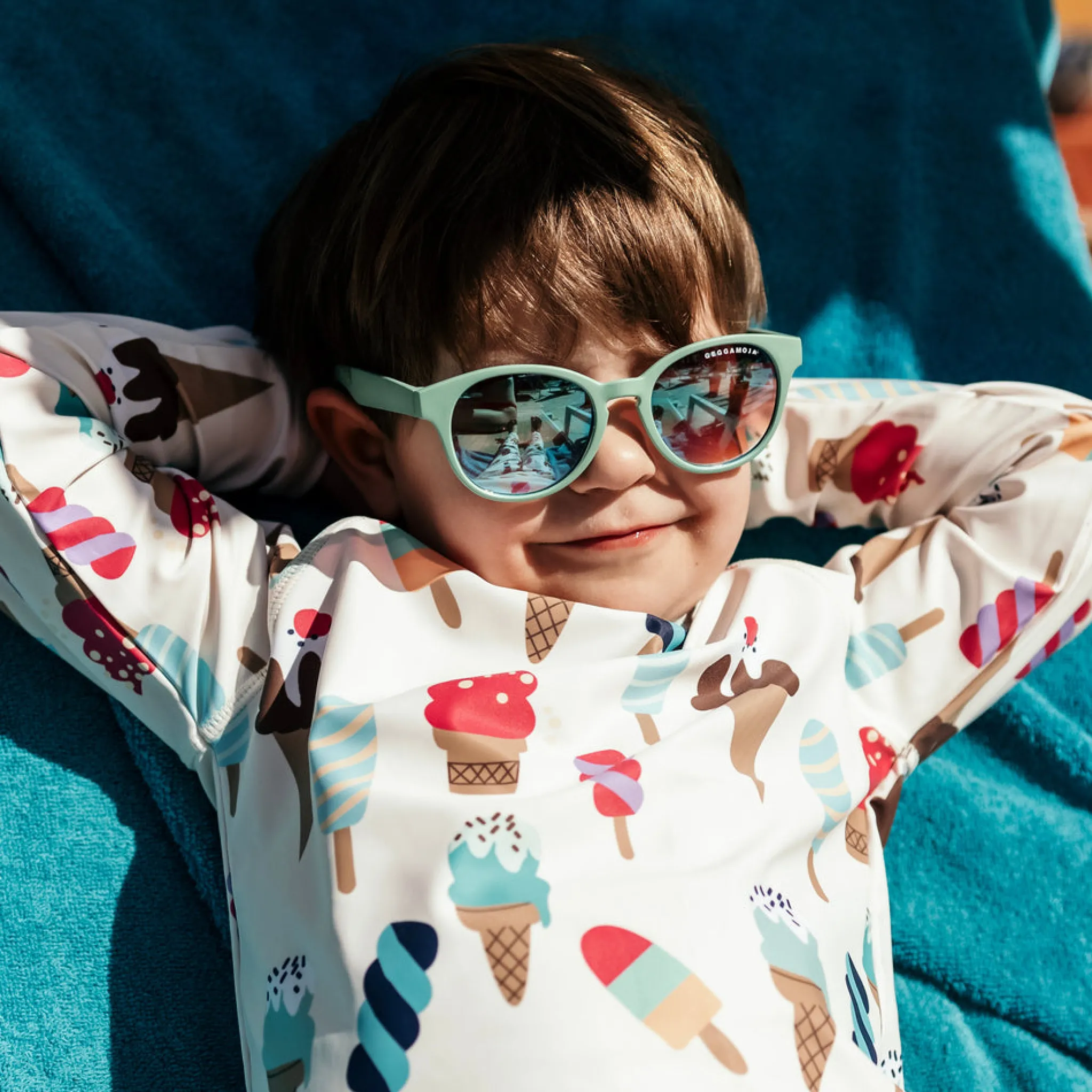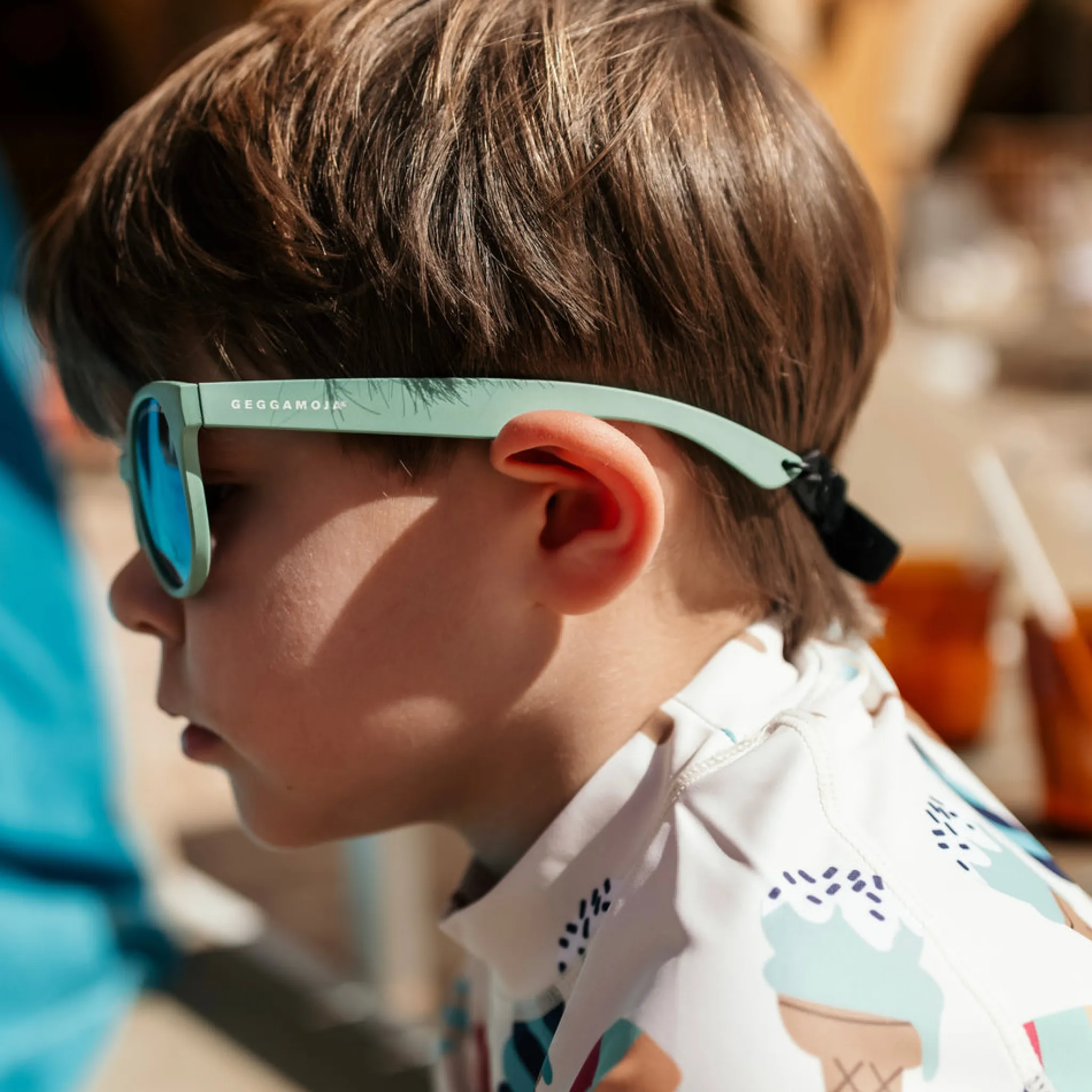 Bågarna är tillverkade i flexibel och BPA-fri plast, vilket gör dem både tåliga och bekväma för barn att bära. Den reglerbara och avtagbara snodden hjälper solglasögonen att sitta stadigt även när barnet är aktivt.