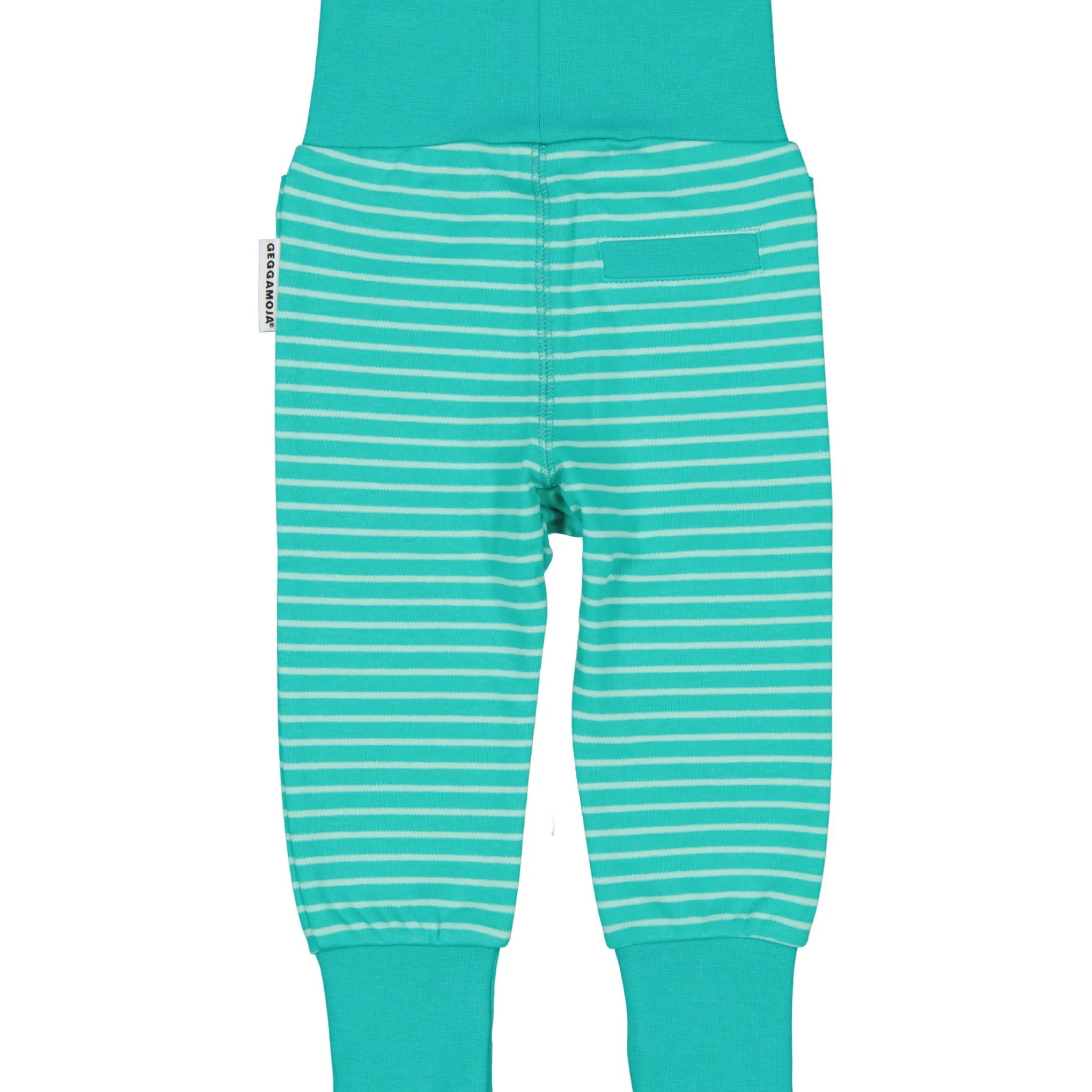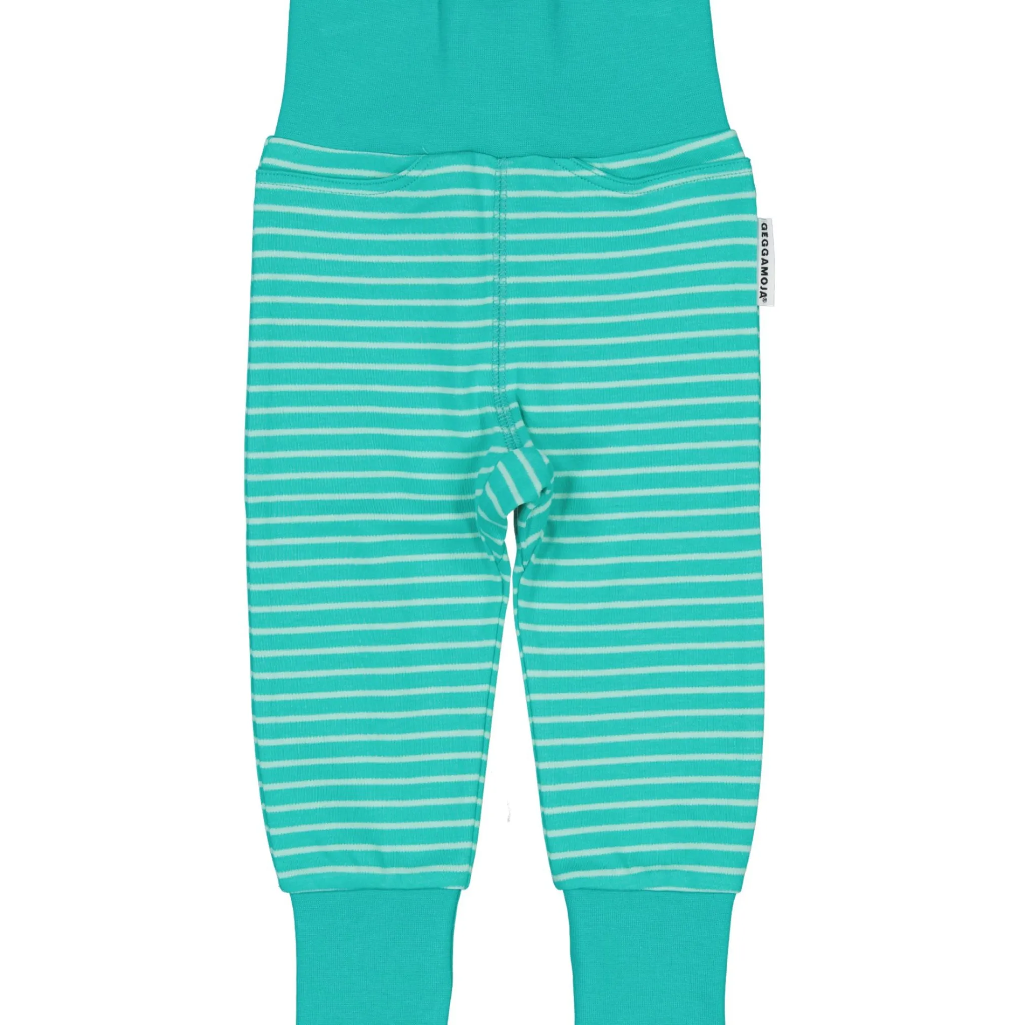 Babybyxa i randig trikå för de minsta, med mjuk bred mudd i midja och benslut. Muddarna viks med fördel upp och ner vart efter barnet växer.
