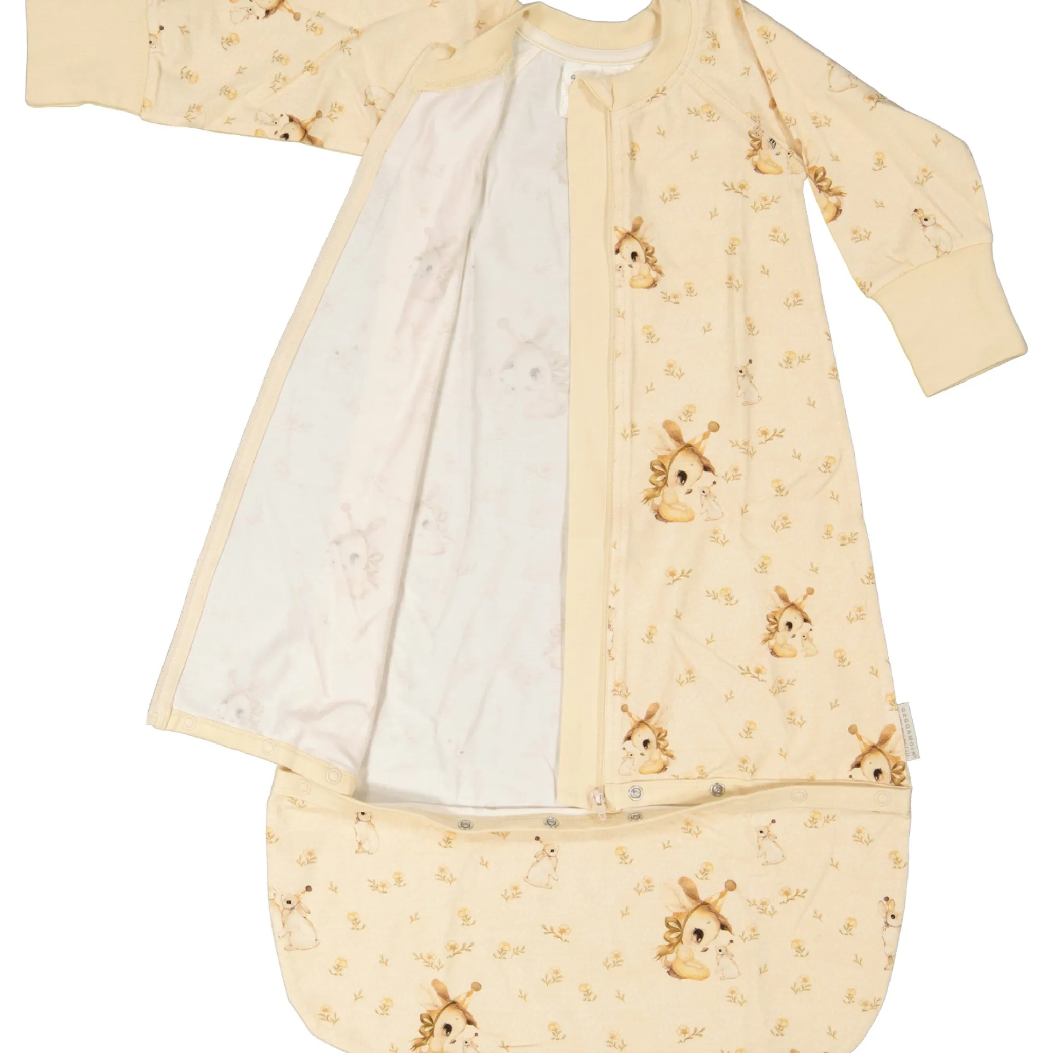 Skönaste sovpåsen i mjukaste bambu. Sovpåsen är en perfekt alternativ till barn som rör sig mycket i sömnen. Sovpåsen riskerar inte att täcka bebisens huvud eller att täcket trasslar in sig. Bambu är ett miljövänligt materialval, det odlas helt organiskt utan bekämpningsmedel och är 100 % biologiskt nedbrytbart. Bambu är lent och bekvämt mot huden och tillåter huden att andas. Dess termiska egenskaper, liksom ull och silke, gör att materialet känns varmt när det är kallt och svalt när det är varmt- ett perfekt material för barnkläder.