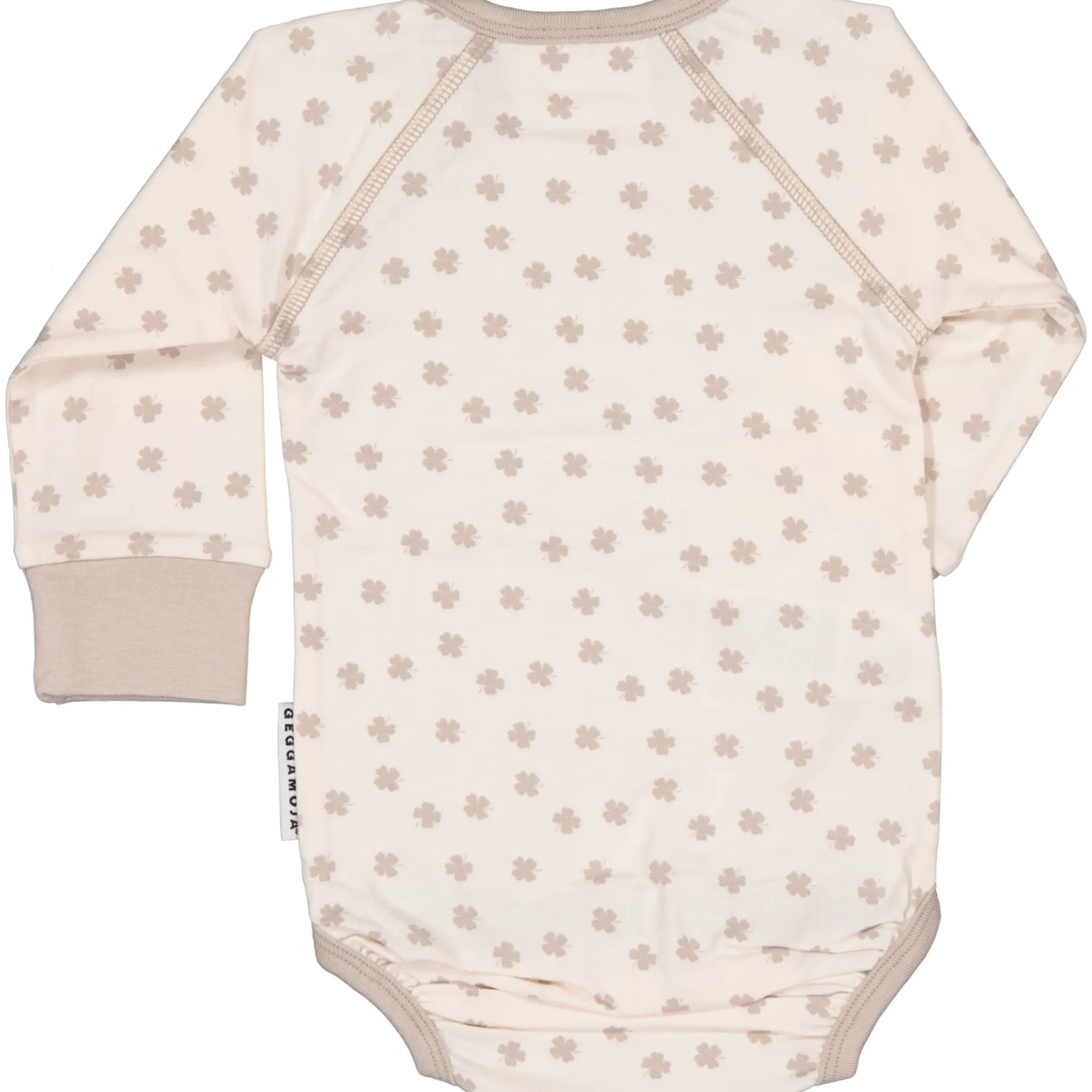 En mjuk body i bambu med klövermönster – ett självklart basplagg i baby- och småbarnsgarderoben. Bambu är följsam och känns len mot huden, vilket gör bodyn extra skön att bära hela dagen. Passar perfekt som första lager och är lätt att matcha med byxor, leggings eller under en overall.
