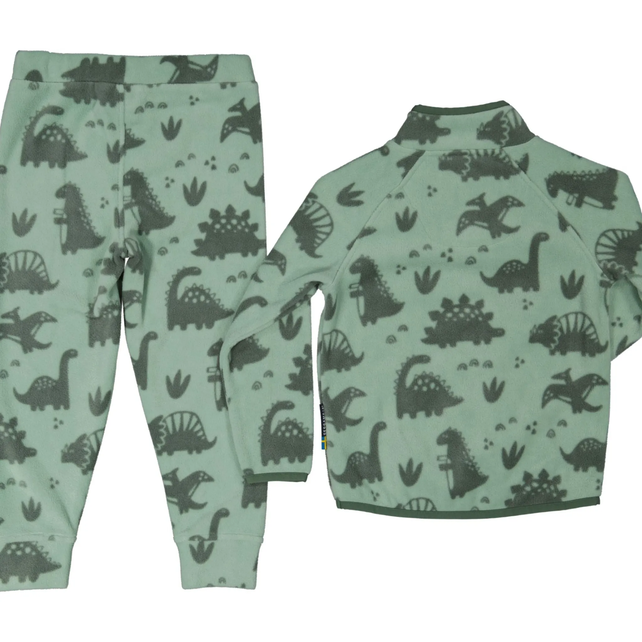 Värme, rörlighet och komfort i ett praktiskt set. Detta fleece-set är lika mångsidigt som det är bekvämt – perfekt för både sommarens svala kvällar och vinterns kalla dagar. Bär det som ett värmande lager 2 under ytterkläder eller som det är när temperaturen tillåter. Jackan har elastiska kantband och blixtlås framtill. Den lite längre modellen med avrundad rygg ger extra skydd och en snygg passform. Byxan är lika genomtänkt, med mjuka muddar i fleece och en reglerbar hålresår i midjan, så att den alltid sitter perfekt – oavsett om det är lek i sandlådan eller mys i soffan som står på schemat. Ett användbart, mjukt och följsamt set som blir en favorit året om.