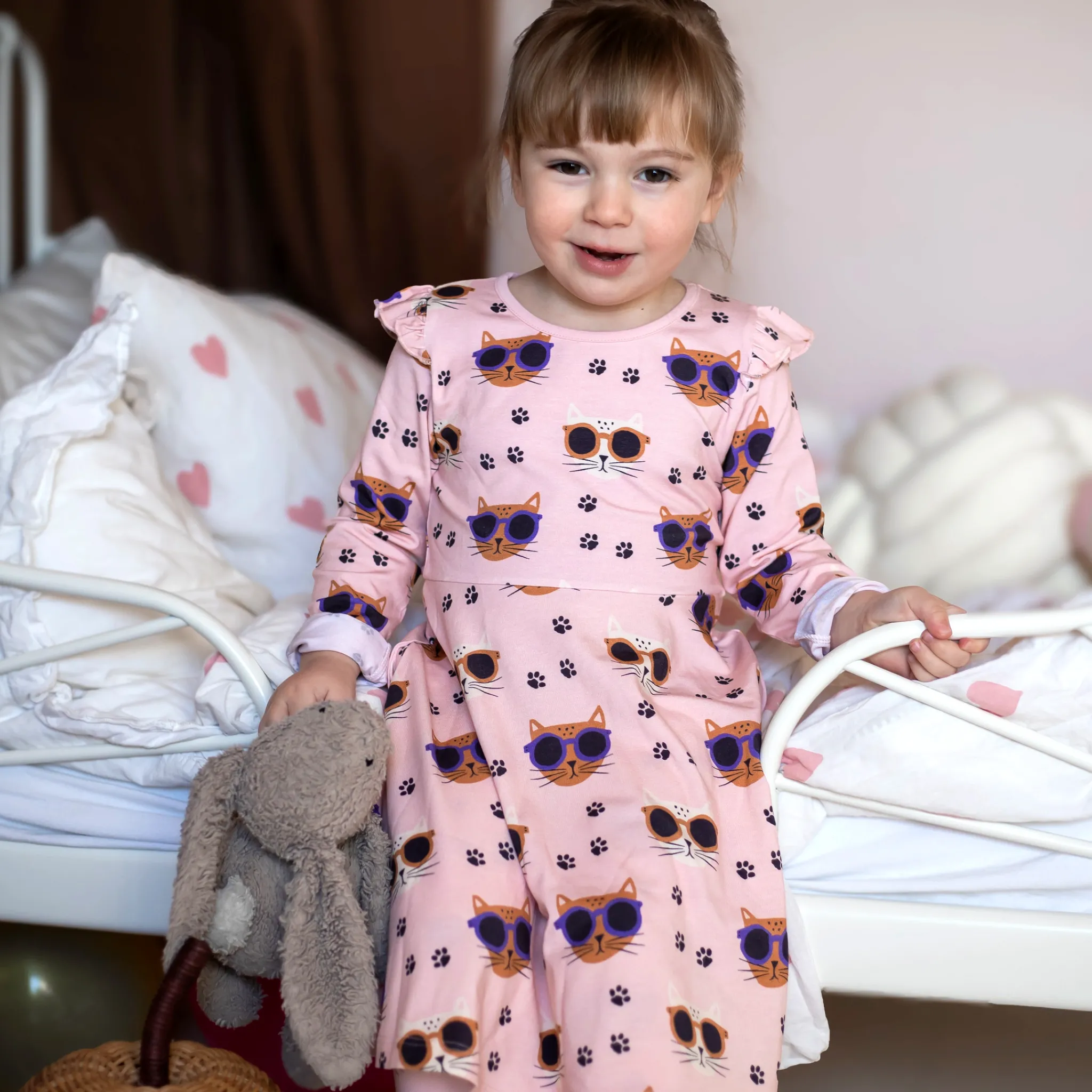 Långärmad snurrklänning i bambu. En klassisk favorit i garderoben hos många Geggamojakunder. I de två minsta storlekarna 50/56 och 62/68 har den en insydd body.
