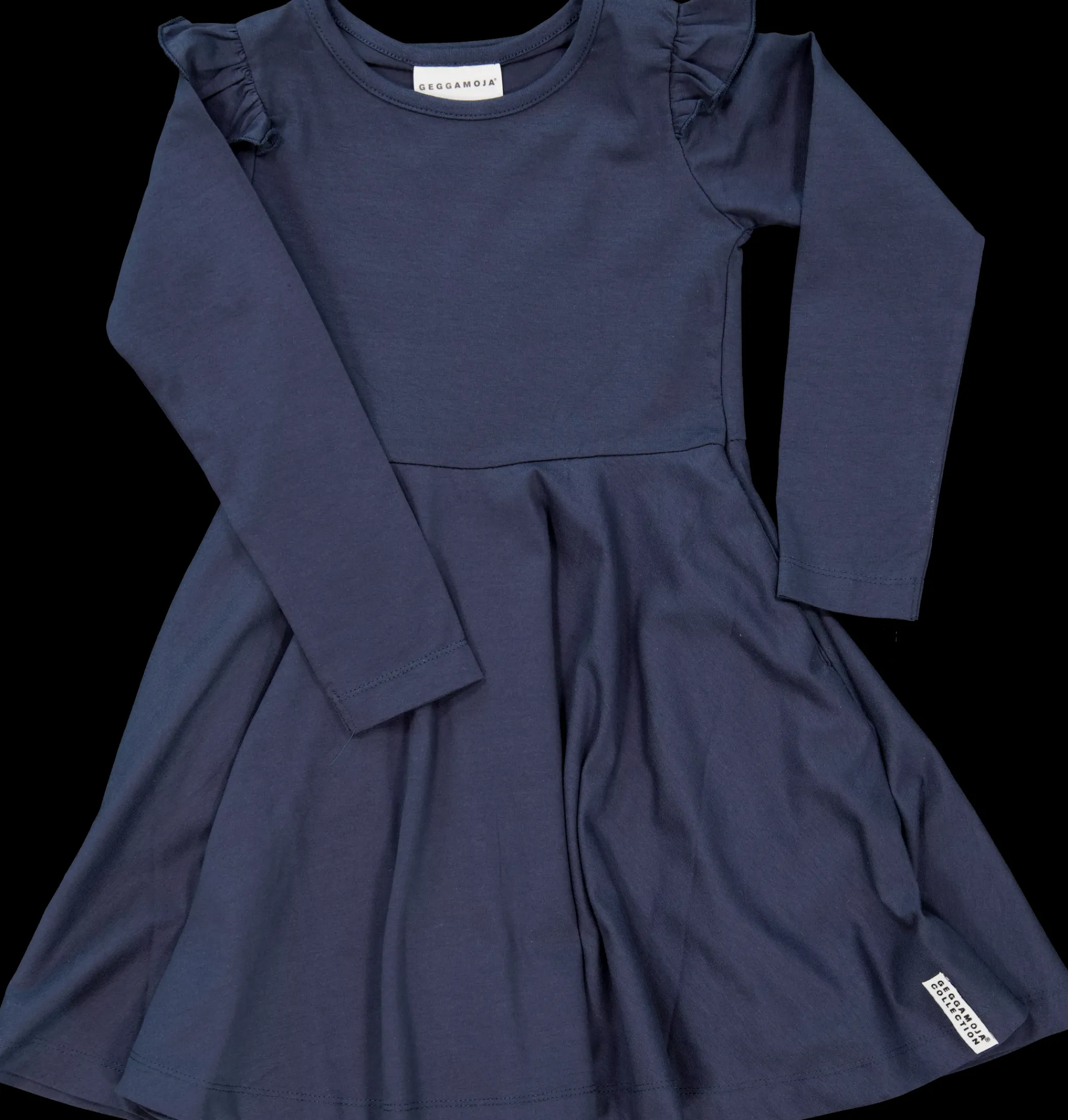 Snurrklänning med lång ärm. Volang framtill. Vid kjoldel. Stl 50/56-62/68 har body.