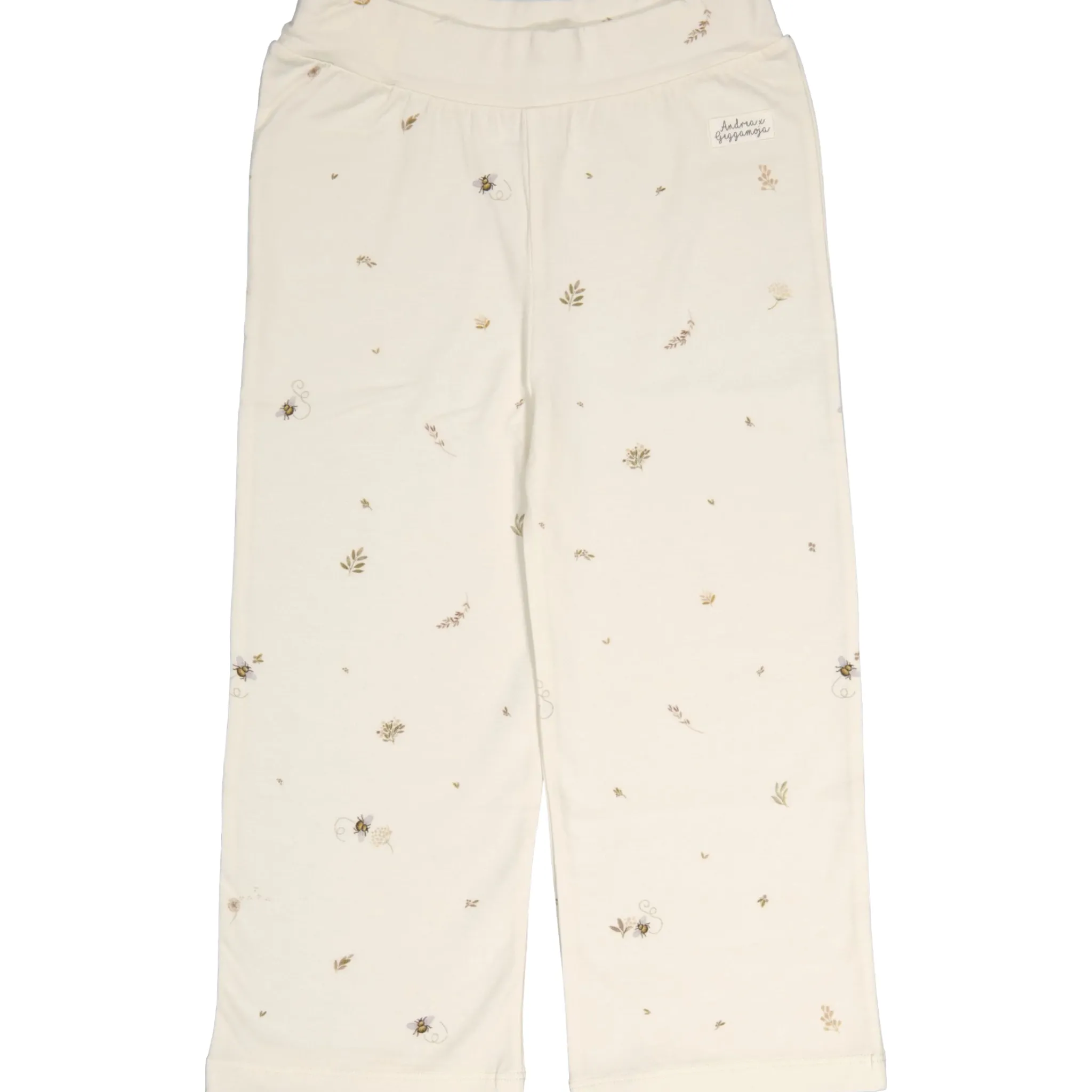 Mjuka vida byxor i bambu. Bambu är ett miljövänligt materialval, det odlas helt organiskt utan bekämpningsmedel och är 100 % biologiskt nedbrytbart. Bambu är lent och bekvämt mot huden och tillåter huden att andas. Reglerbar resår i midjan.