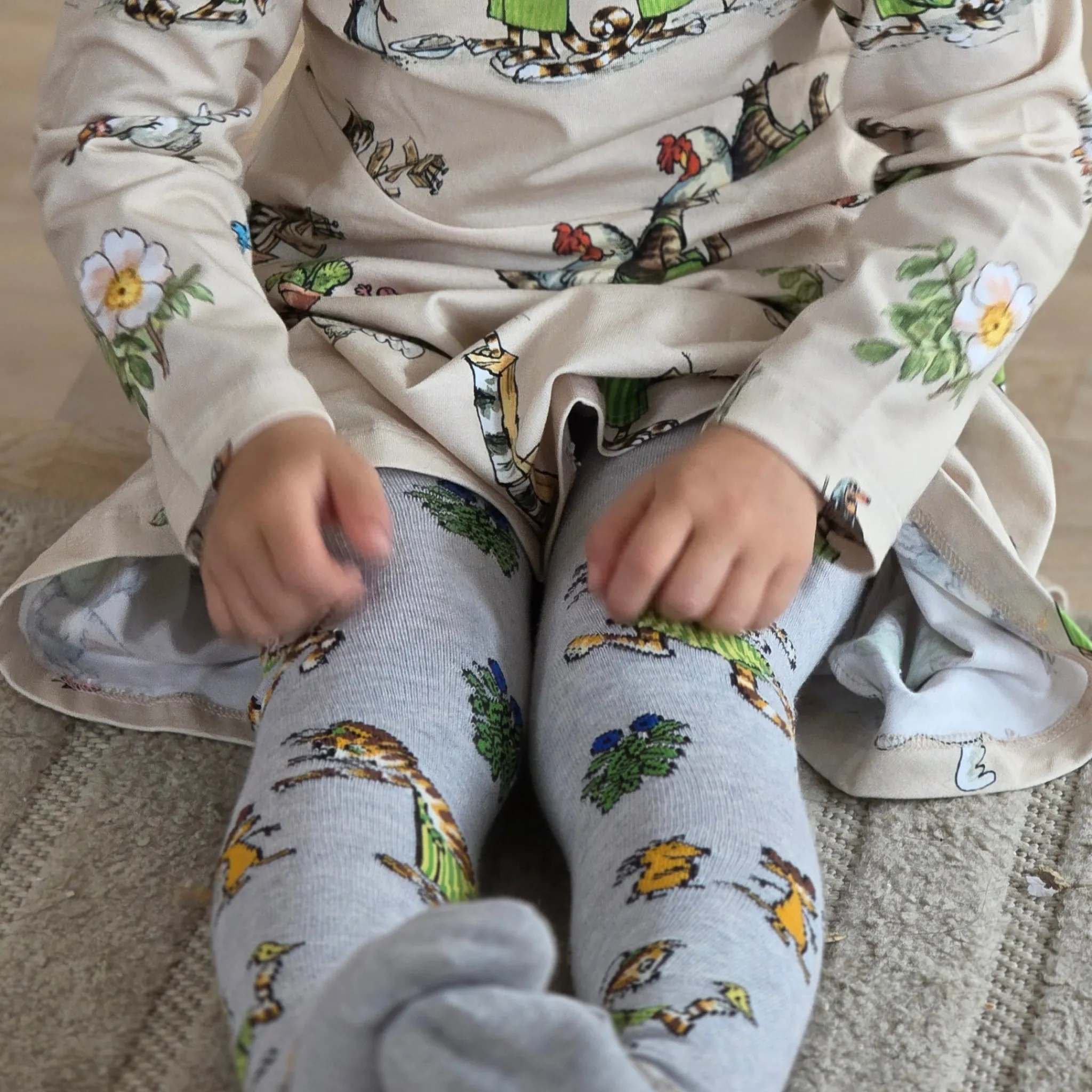 Strumpbyxor i grå bomull med Pettson & Findus motiv. Matcha med klänning eller en tröja.