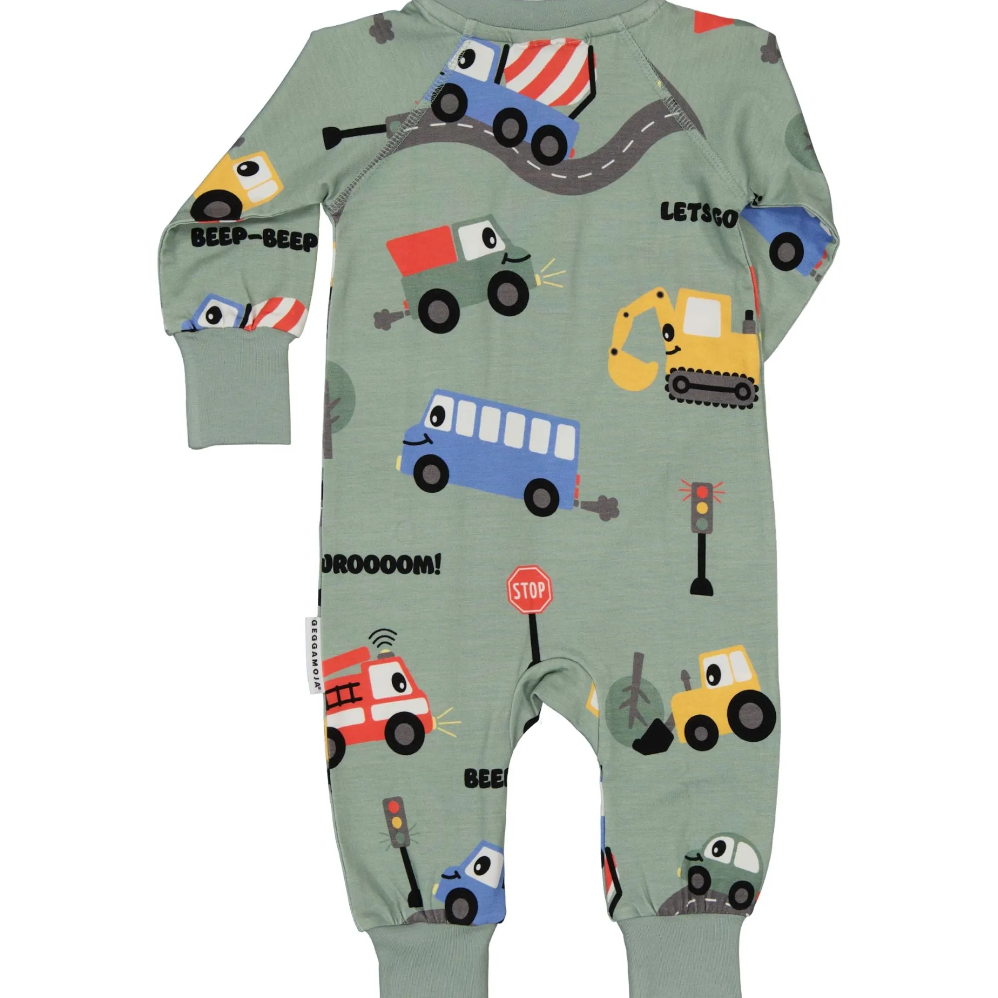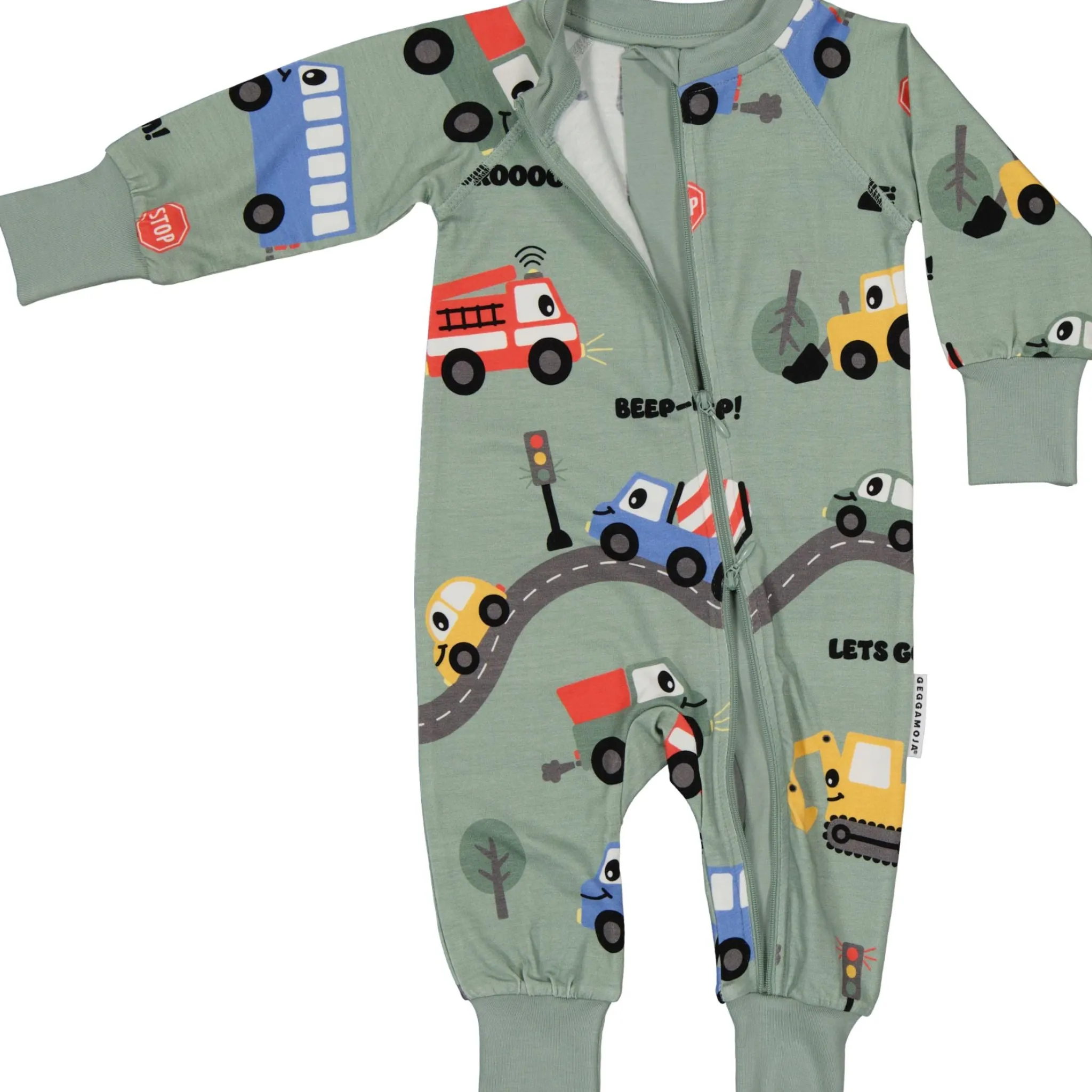 En pyjamas i mjukaste bambu. Pyjamasen har en 2-vägs blixtlås för enkel på och avklädnad och blixlåsskydd mot huden. Pyjamasen har muddar i ärm- och benslut som gör att storleken håller längre och bidrar till skönare passform. Bambu är ett miljövänligt materialval, det odlas helt organiskt utan bekämpningsmedel och är 100 % biologiskt nedbrytbart. Bambu är lent och bekvämt mot huden och tillåter huden att andas. Dess termiska egenskaper är detsamma som ull och silke, gör att materialet känns varmt när det är kallt och svalt när det är varmt- ett perfekt material för barnkläder.
