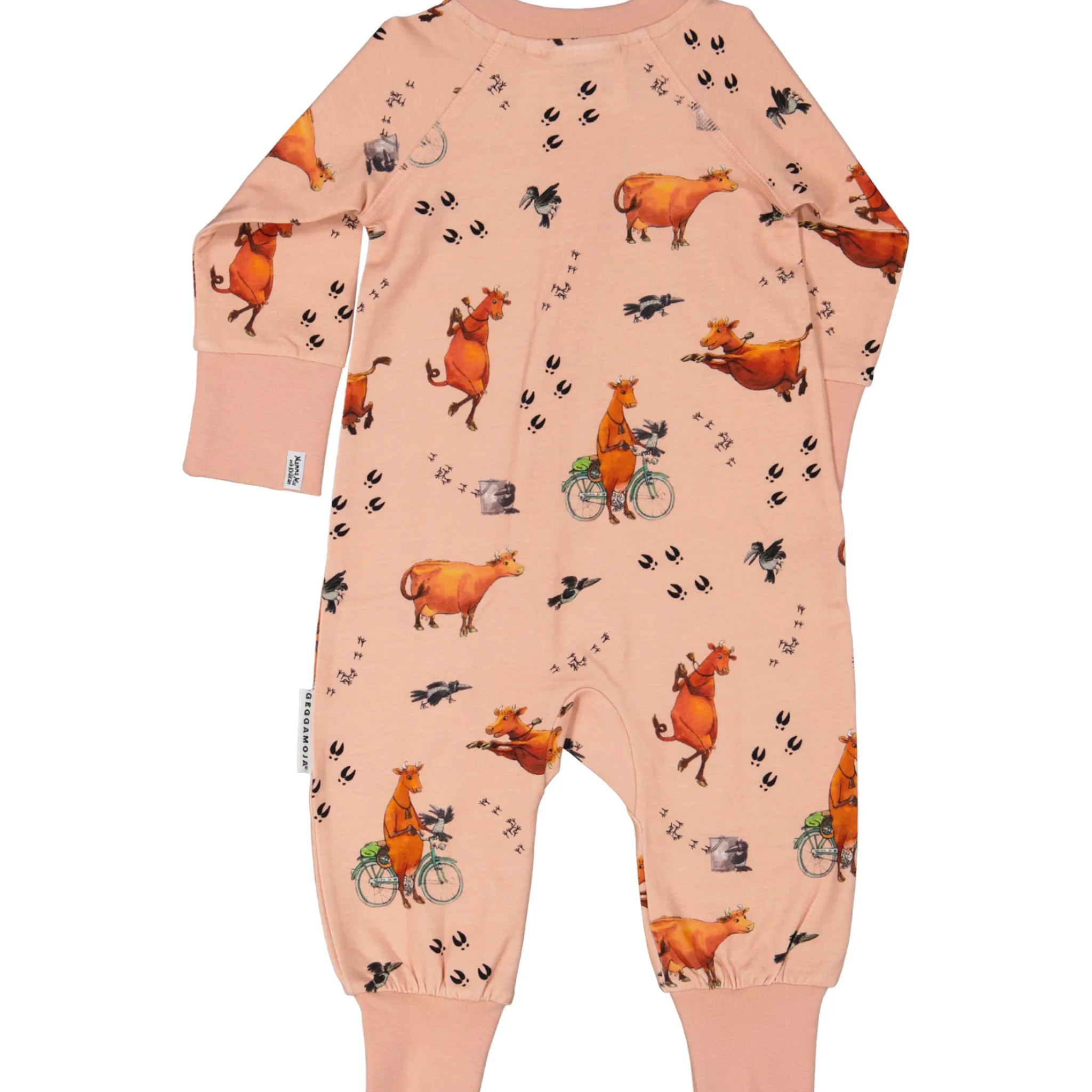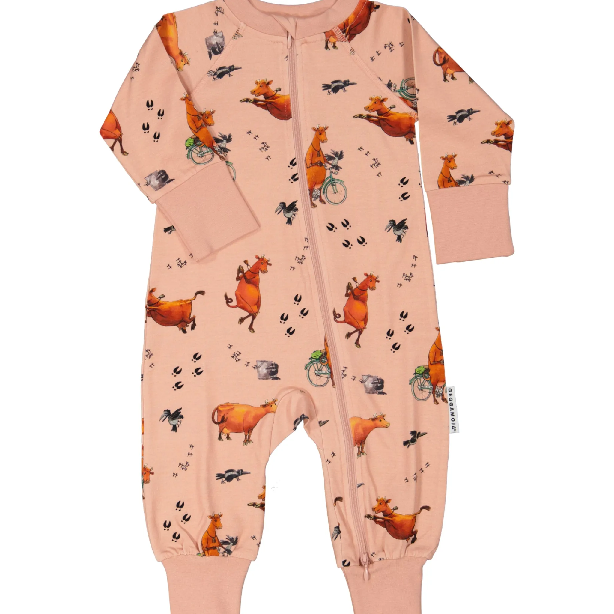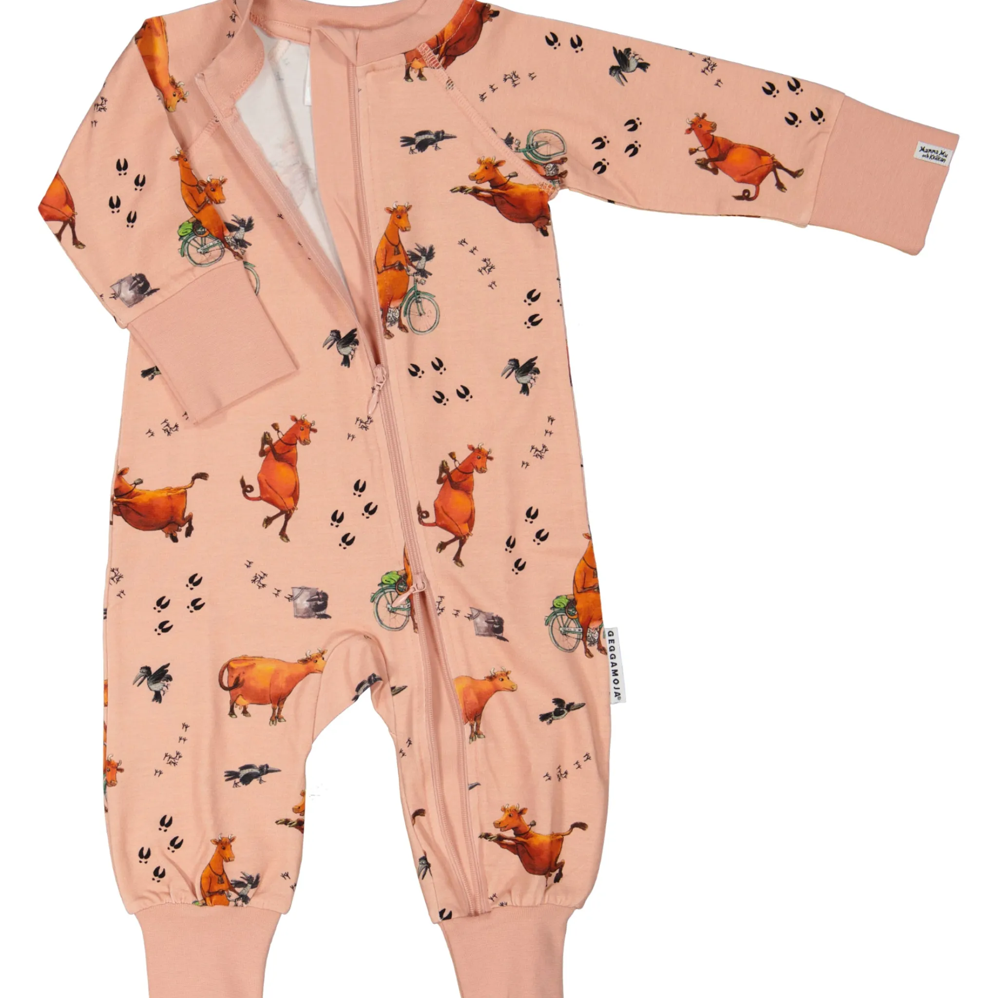 Mjuk och skön Mamma Mu pyjamas i Ekologisk -bomull. Pyjamasen har blixtlås fram med skydd så blixlåset inte ligger mot huden. Blixtlåset går att öppna både uppifrån och nerifrån, vilket underlättar snabba blöjbyten på natten. Breda muddar ärm och benslut gör så att pyjamsen kan vikas upp om den är lite stor i från början. Härlig hel pyjamas som inte lämnar glipor.