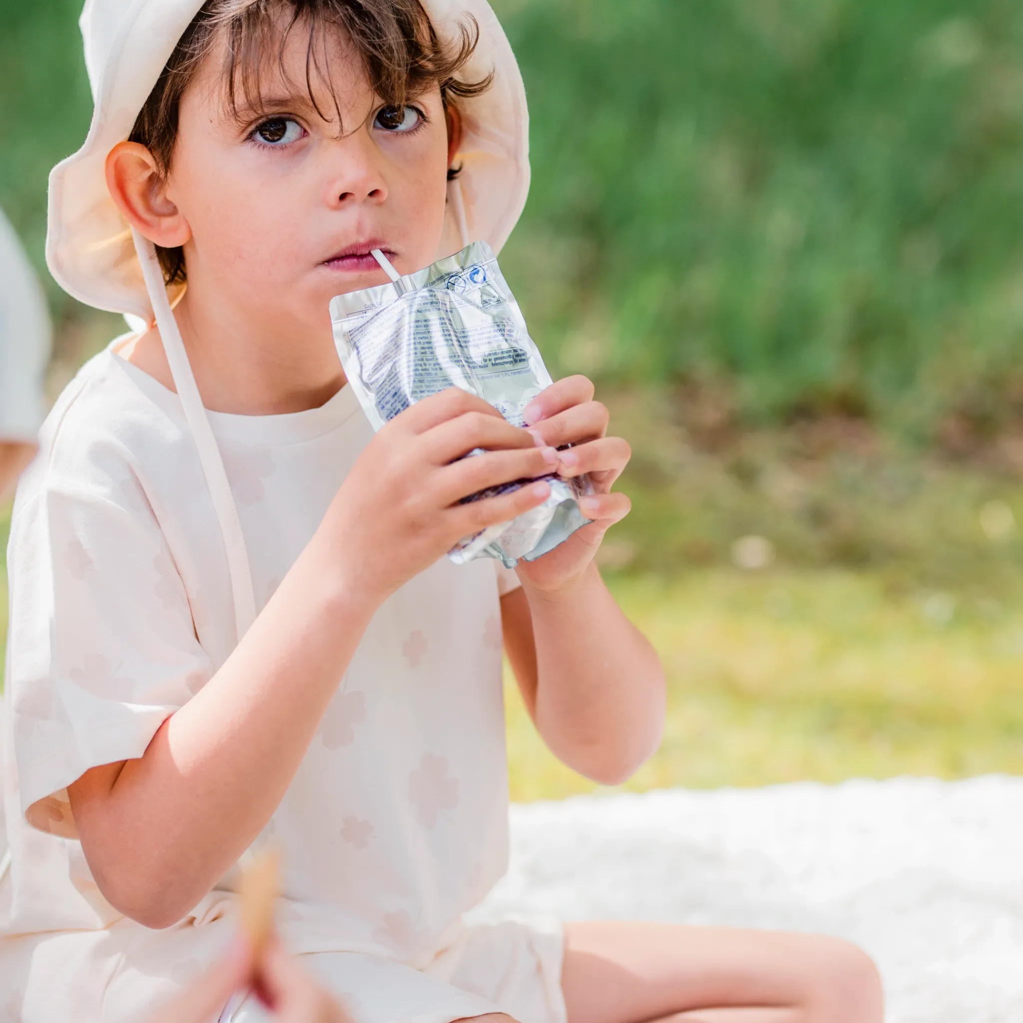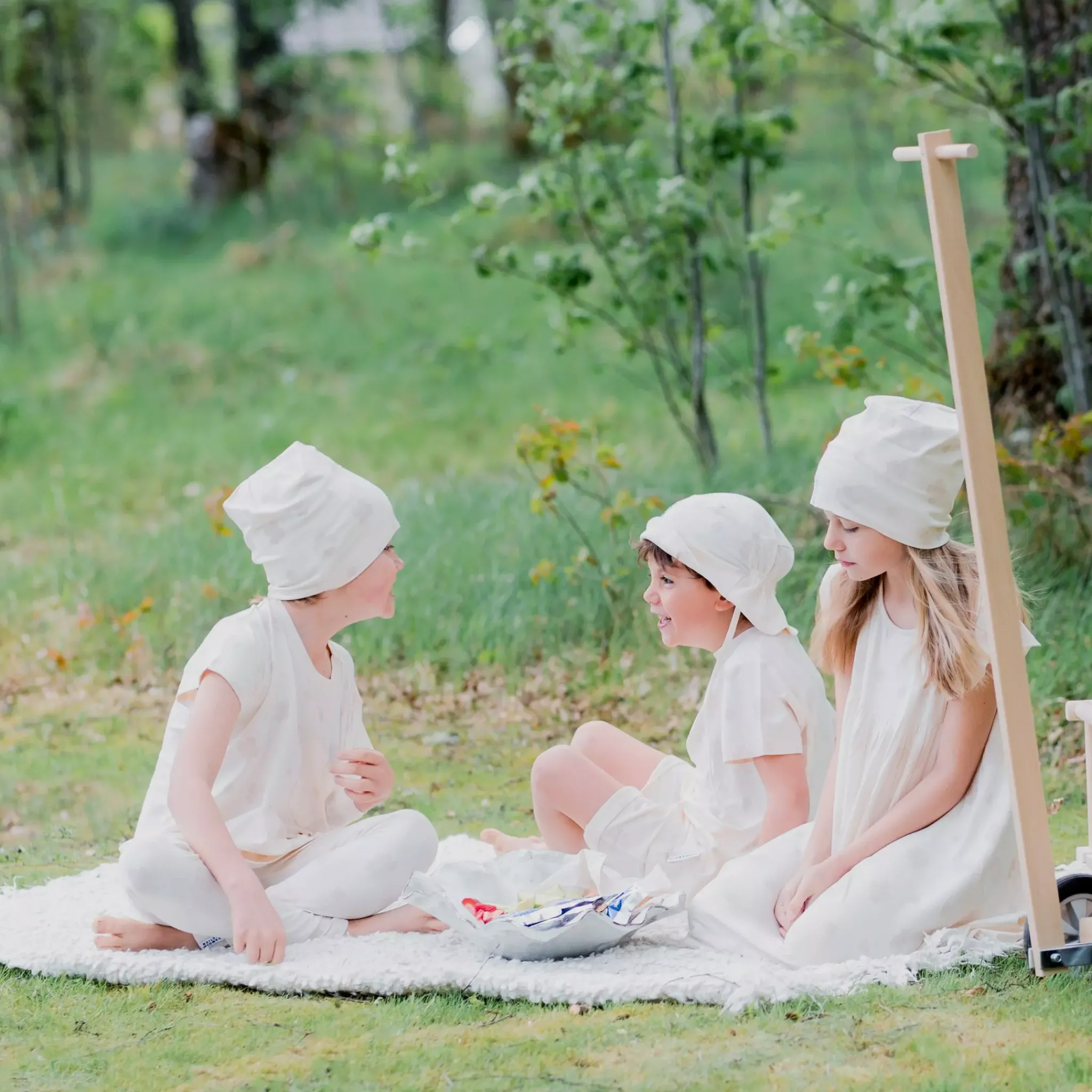 Tvådelad set i mjuk och skön i bambu. Setet består av ett par shorts och t-shirts som passar fint på sommaren men även hela året om barnet är varmt. Bambu är ett miljövänligt materialval, det odlas helt organiskt utan bekämpningsmedel och är 100 % biologiskt nedbrytbart. Bambu är lent och bekvämt mot huden och tillåter huden att andas. Dess termiska egenskaper är detsamma som ull och silke, gör att materialet känns varmt när det är kallt och svalt när det är varmt- ett perfekt material för barnkläder.