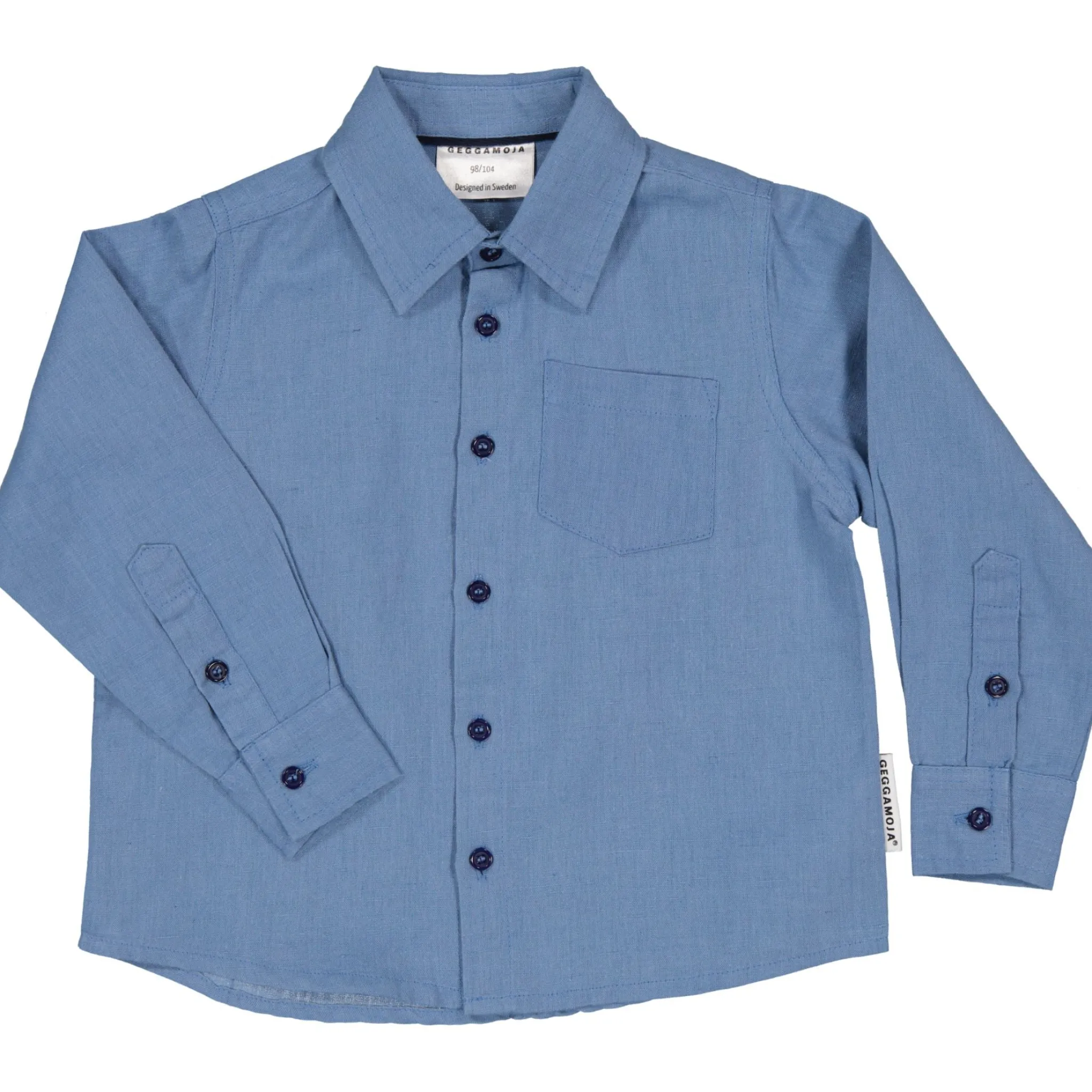En tidlös långärmad skjorta i sval linneblandning – lika fin till kalas som till sommarkvällen. Mjuk, följsam och behaglig mot barnets hud. Passar perfekt att matcha med shorts eller byxor i samma kollektion.