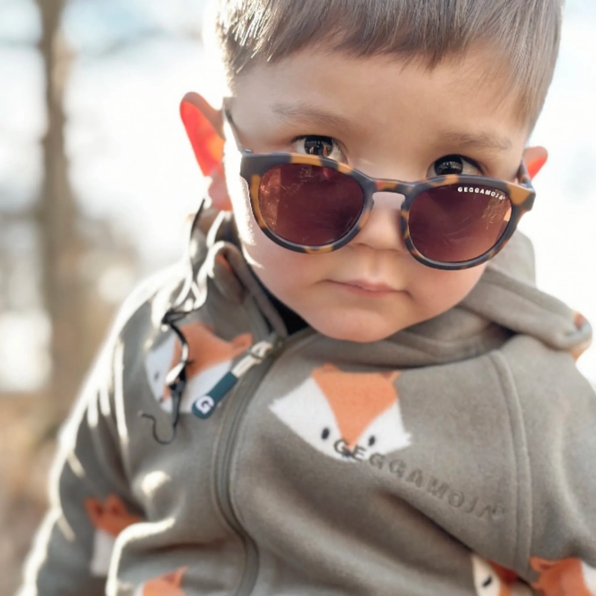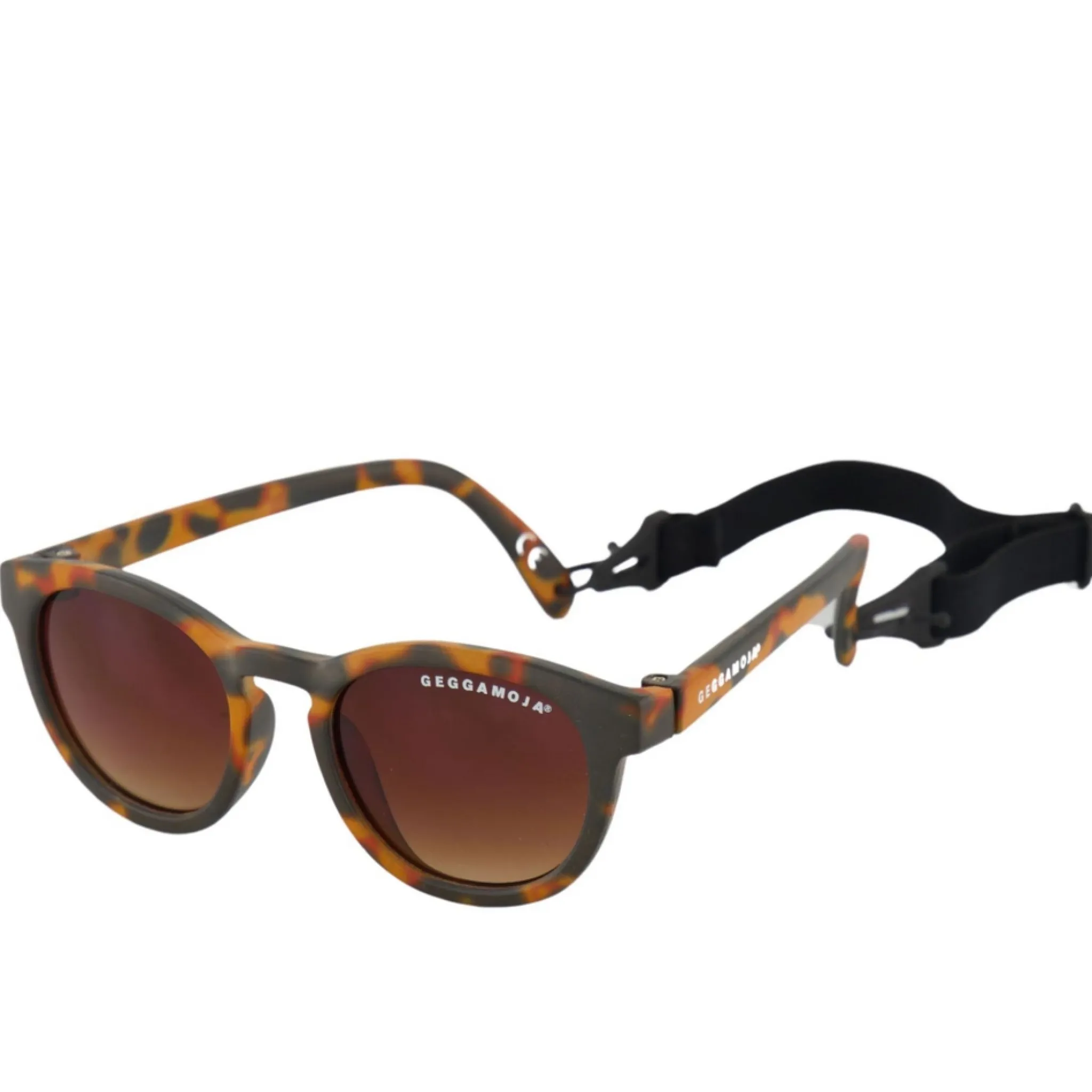Smidiga solglasögon för baby 0–1,5 år i en varm brun färg. De är framtagna för att ge små barns känsliga ögon ett bra skydd mot starkt solljus samtidigt som de sitter bekvämt under promenader, lek och andra stunder utomhus.