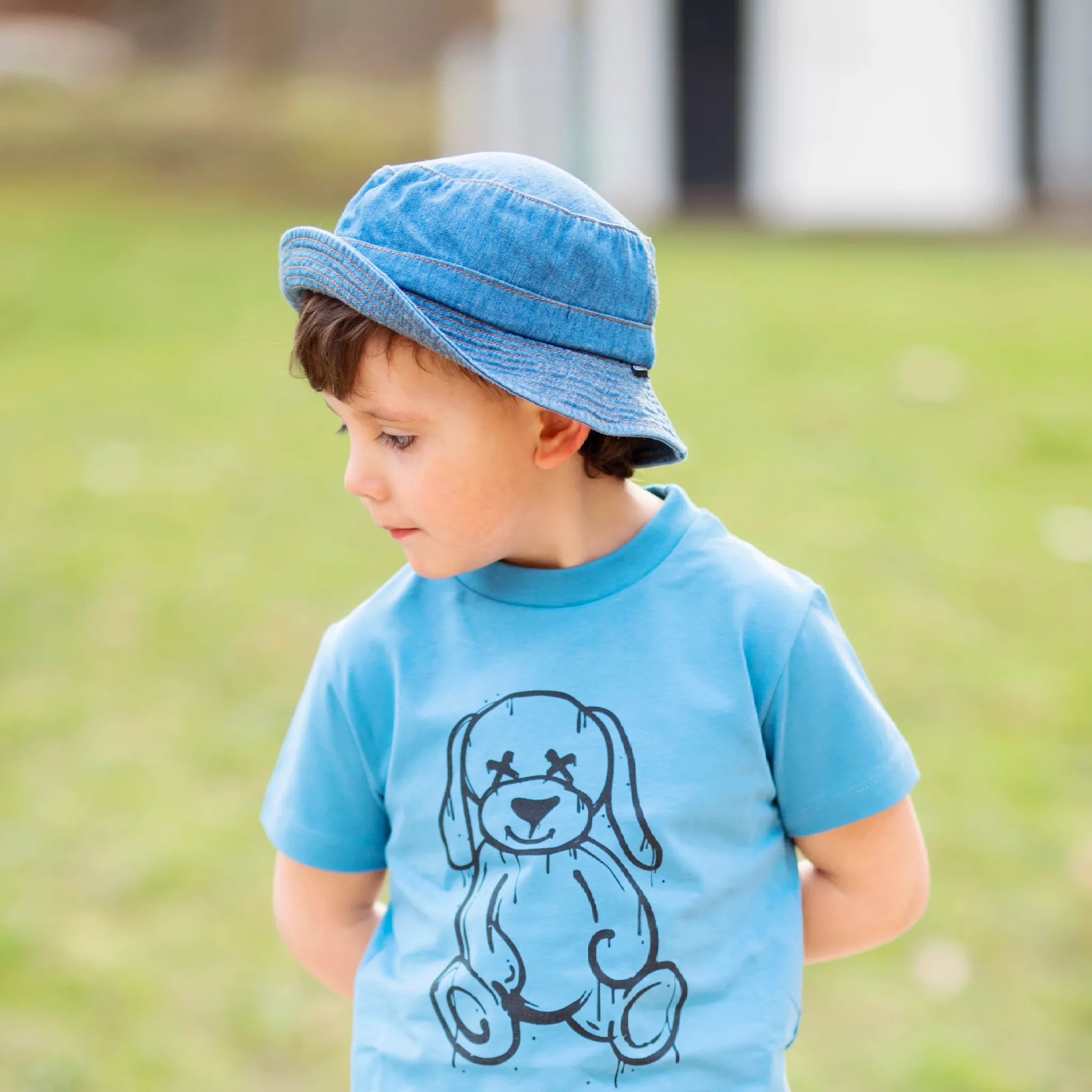 Fiskarhatt i denim. Inuti finns en resår för att underlätta passformen för olika huvudstorlekar.