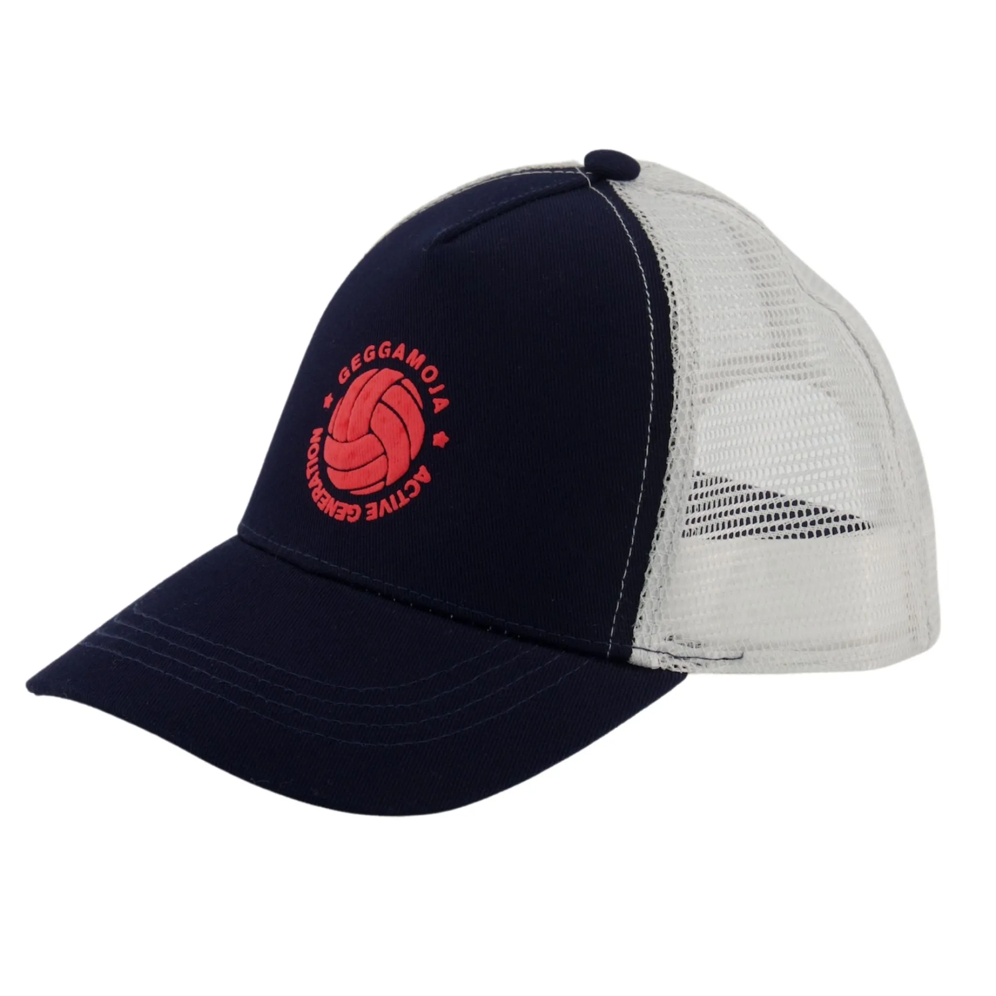 Keps med mesh baktill för varma sommardagar. Kepsen är i marinblå och grå med och har ett reglerbart spänne bak.