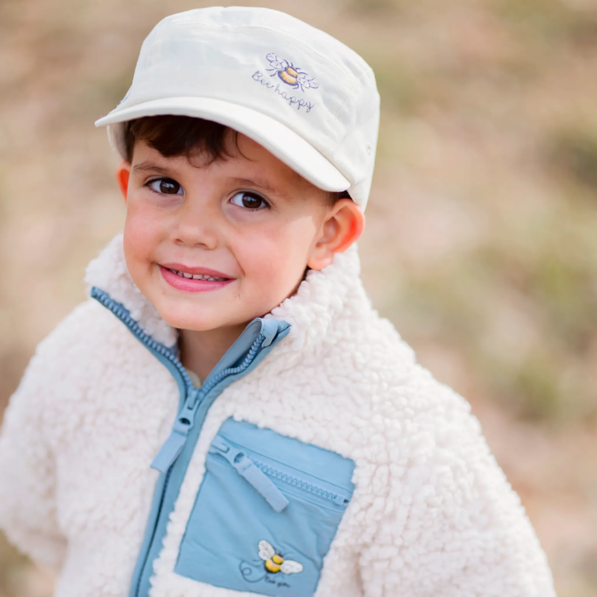 Keps i beige. Skärm som skyddar ansiktet mot solen.