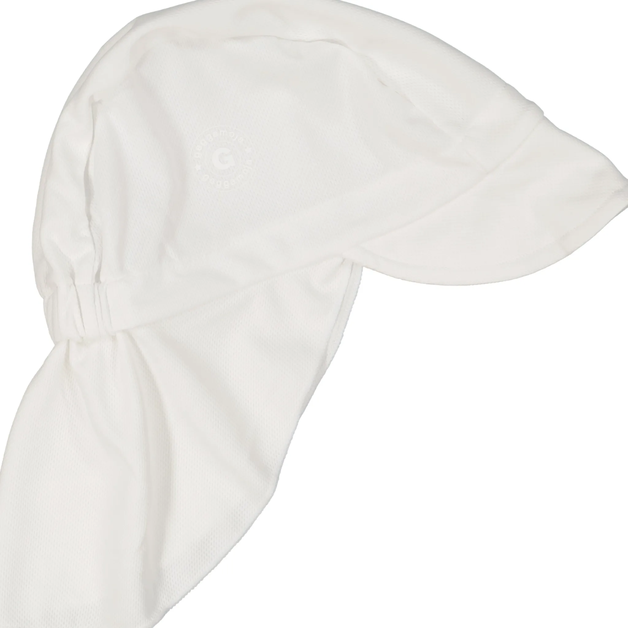 Solhatt för barn med solskyddsfaktor i tyget- UV50+ blockerar 98 % av solens skadliga UVA- och UVB-strålar. Tillverkad av ett vatten- och smutsavvisande material i tyg som andas och håller barnet svalt. Solhatten har en bred skärm som skyddar ögon och ansikte och långt skydd för nacken mot solens strålar.