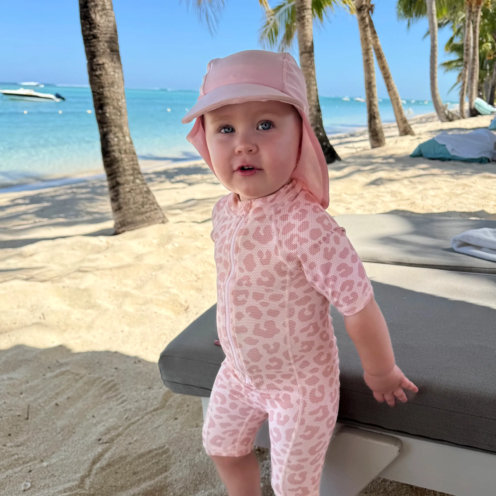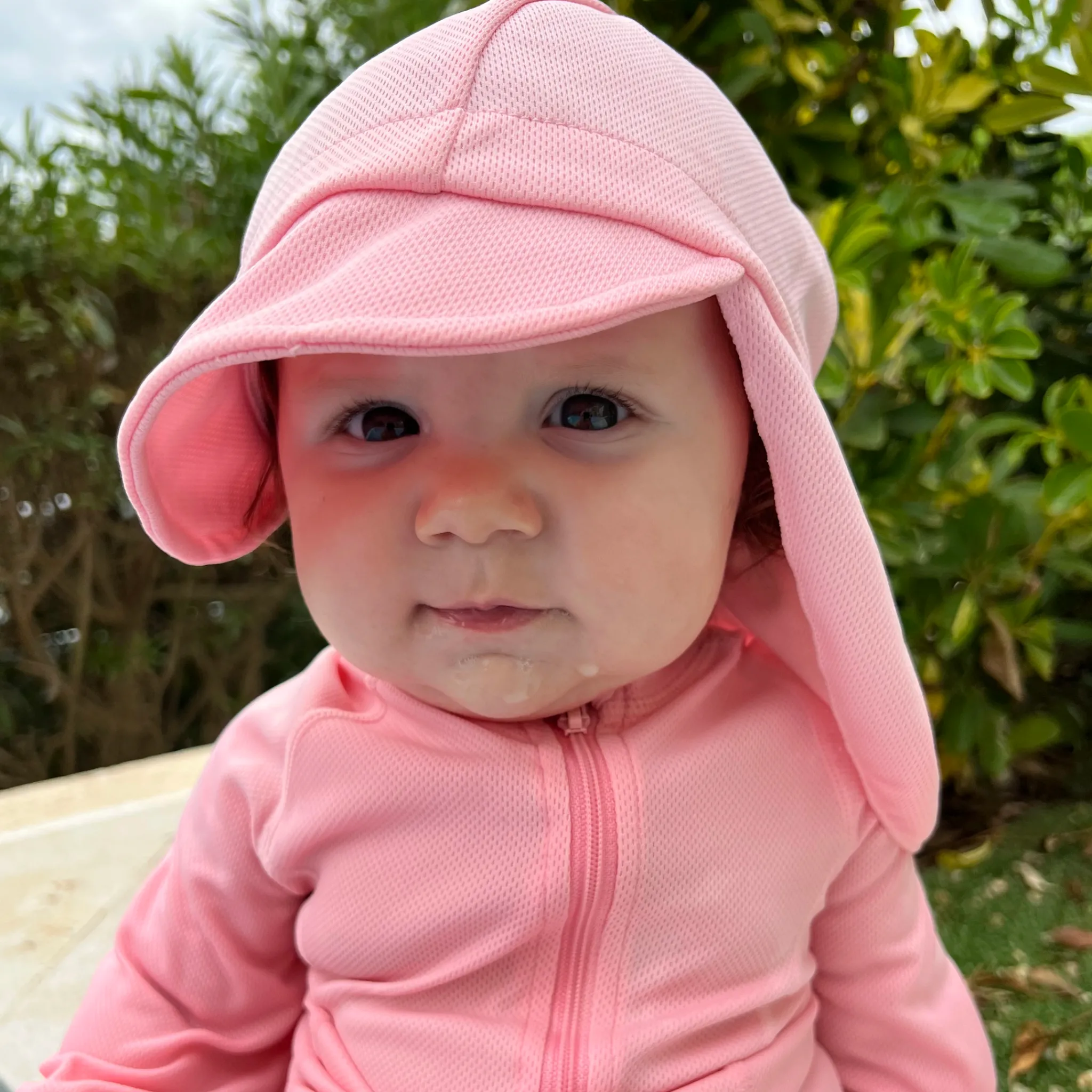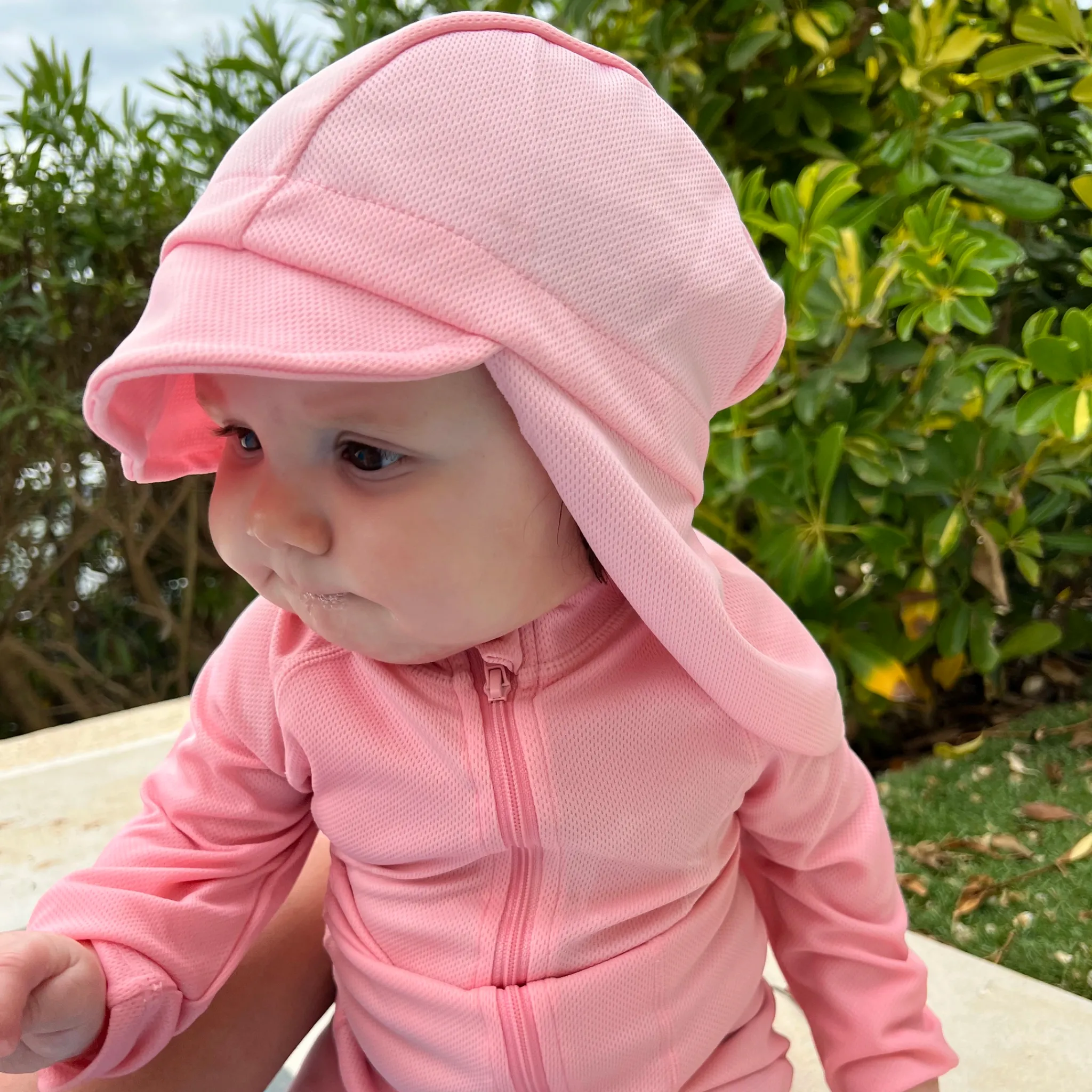 UV-hatt med ”kappa” och skärm. UV50+ blockerar 98 % av solens skadliga UVA- och UVB-strålar.