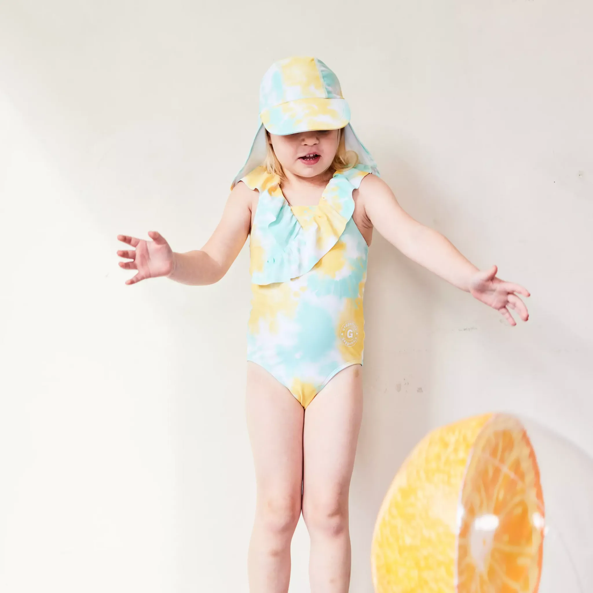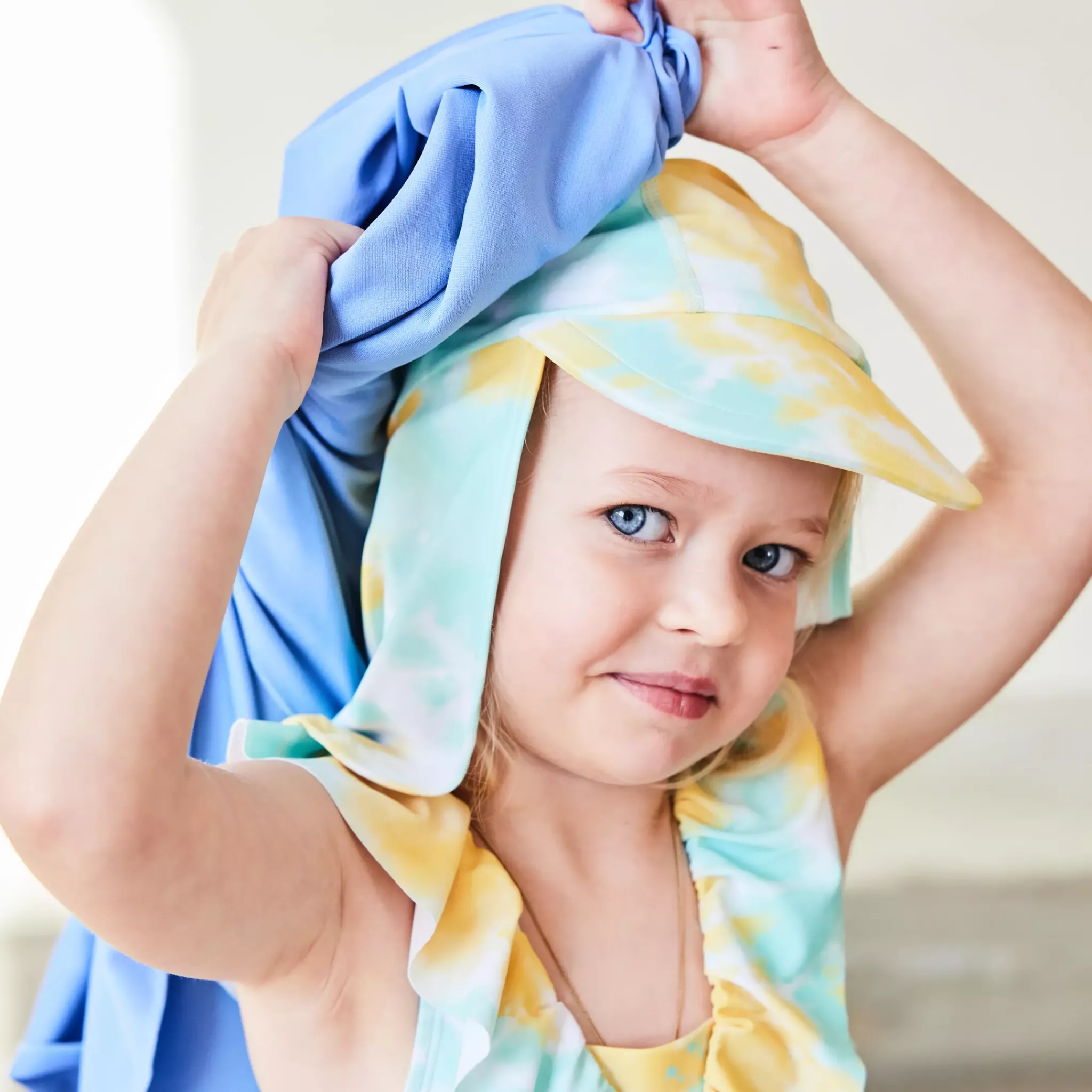 Skydda ditt barns huvud med en UV-Solhatt. Solhatten och är tillverkad i ett snabbtorkande material med UV50+ som blockerar 98% av solens farliga UVA- och UVB-strålar. Solhatten har en skärm och cape för extra skydd i ansikte och nacke.