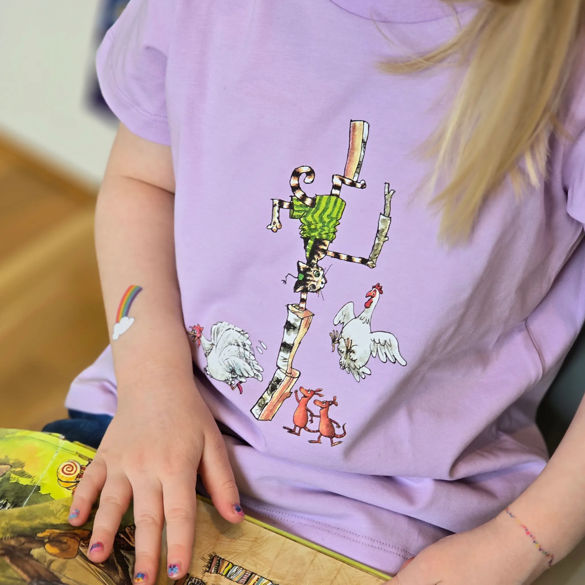 Kortärmad T-shirt med Pettson och Findus-motiv.