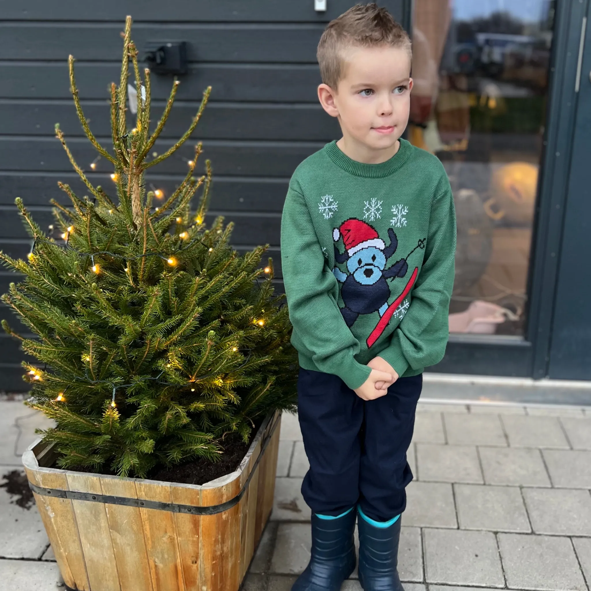 Följ med Doddi på skidäventyr. Vinterns härligaste stickade tröja i 100% Bomull.